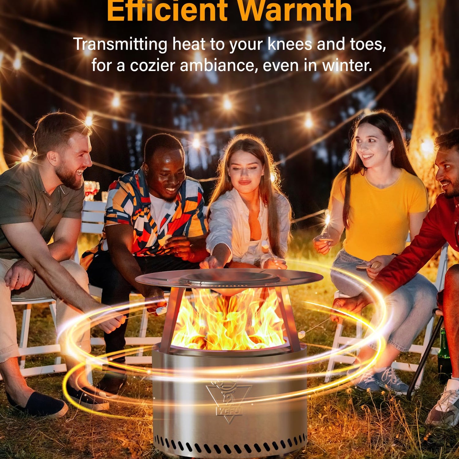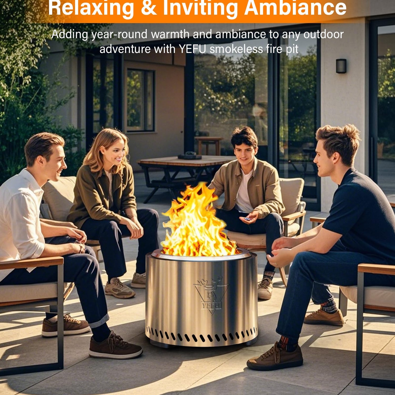 - Warmer & Fuel Efficient: YEFU fire pit in large size features an exclusive 3-combustion technology for efficient wood burning, delivering more heat with less wood and pallet fuel. Enjoy a cozier, smoke-free fire without smoky clothes or irritation with the smokeless firepit — ideal for a healthier, eco-friendly experience, even in winter.