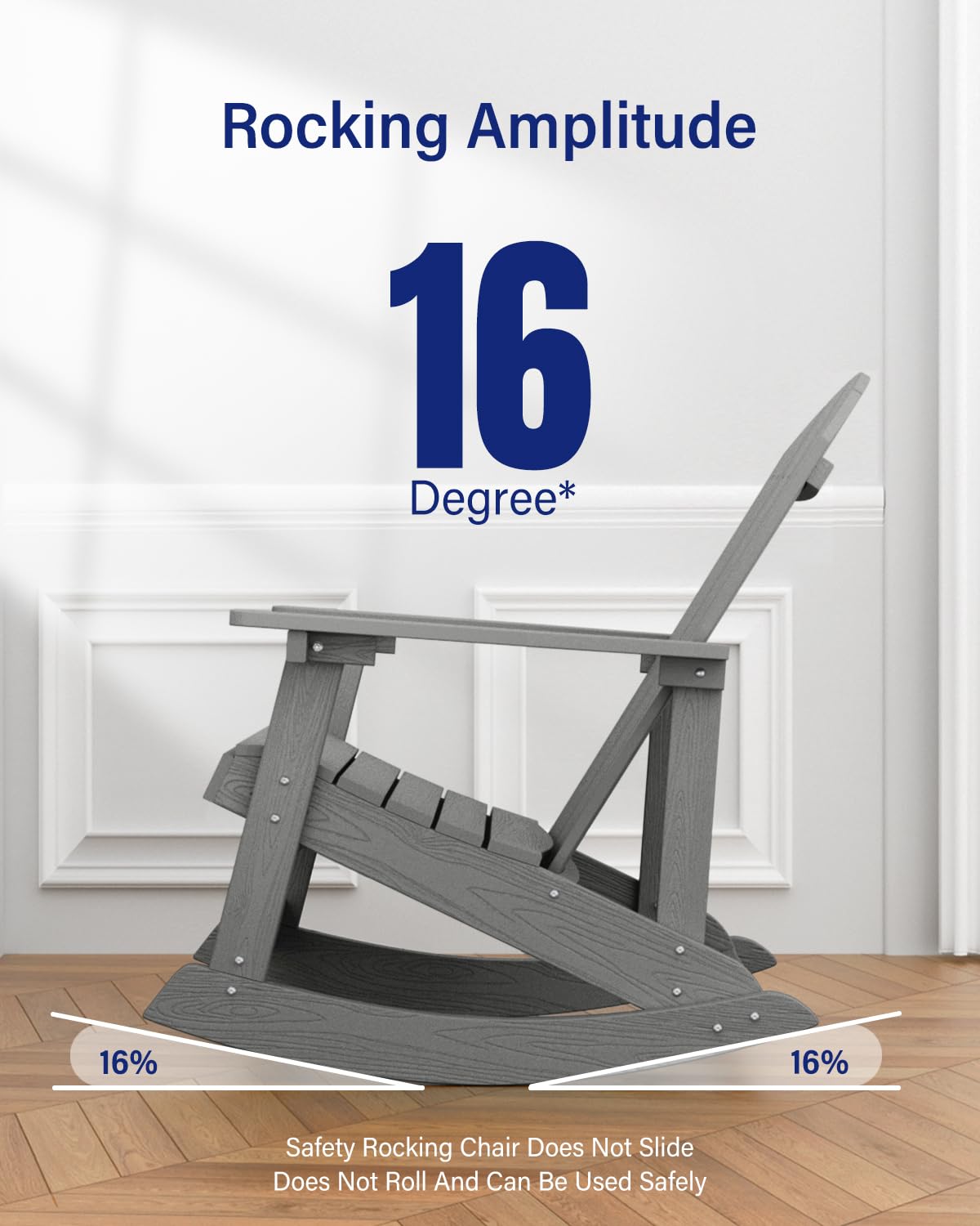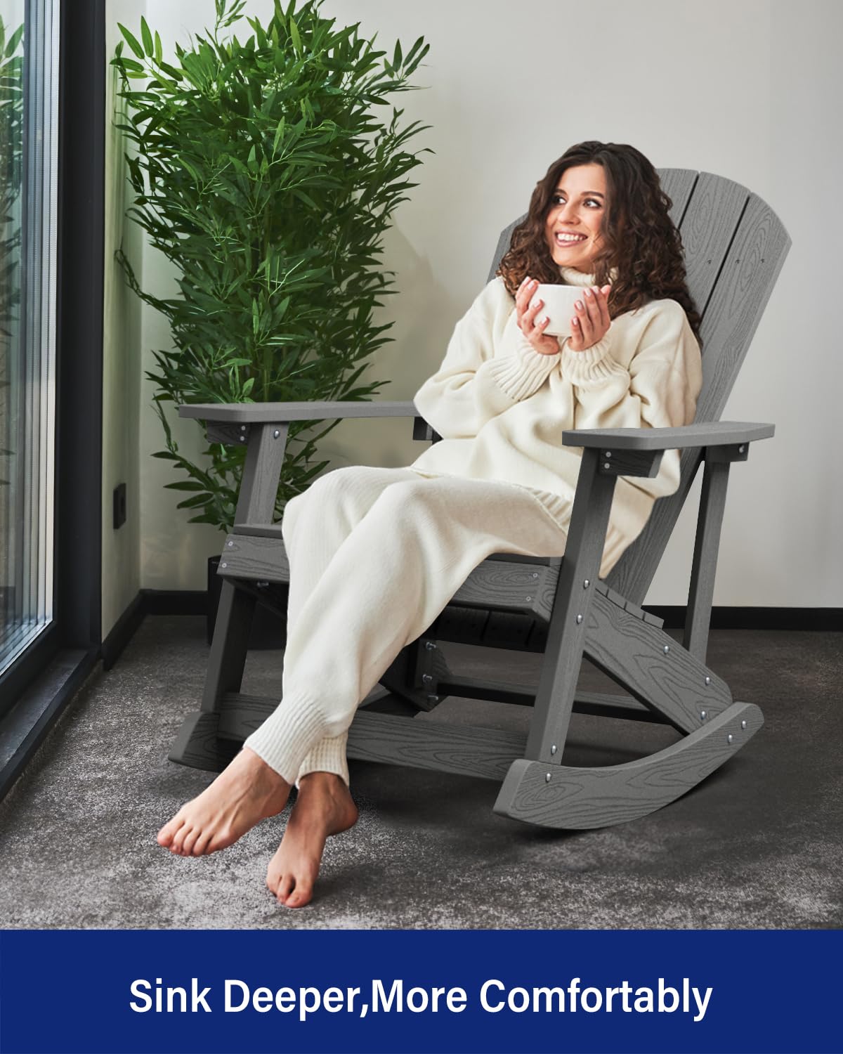 YEFU Outdoor Rocking Chair,Adirondack Rocking Chair,Patio Rocker Chair with Wide Back,Oversized Rocker Chair Look Like Real Wood, for Lawn, Porch, Backyard, Indoor and Garden(Grey)