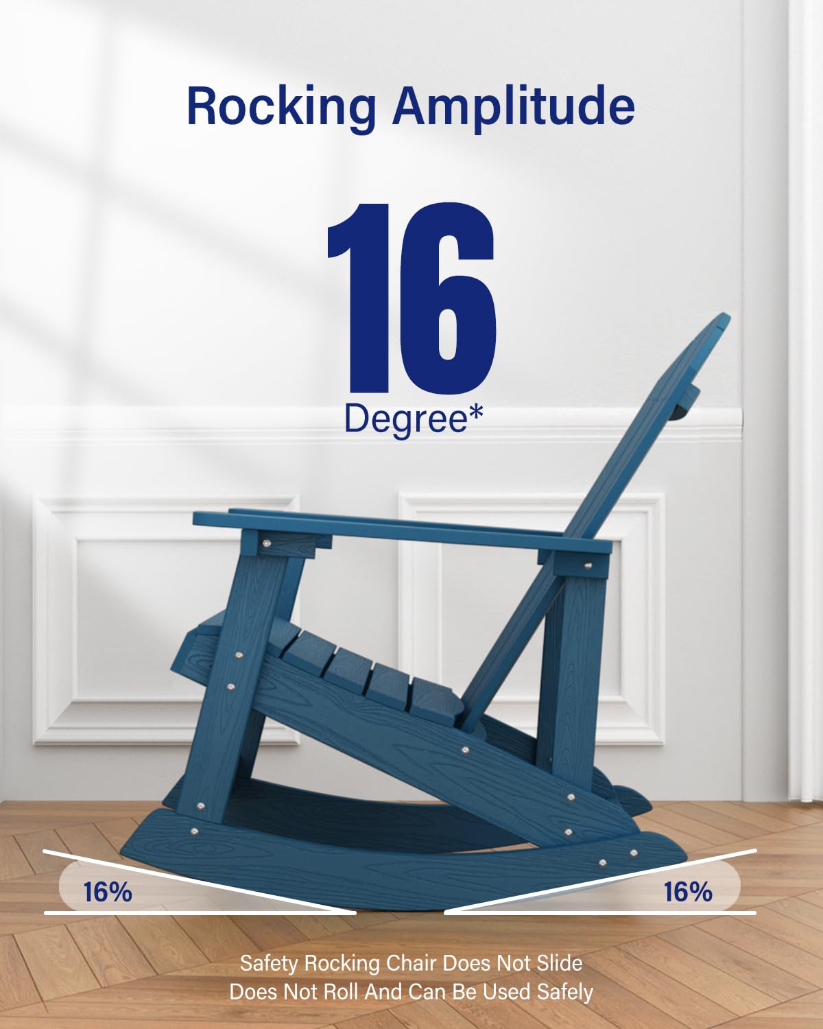 YEFU Outdoor Rocking Chair,Adirondack Rocking Chair,Patio Rocker Chair with Wide Back,Oversized Rocker Chair Look Like Real Wood, for Lawn, Porch, Backyard, Indoor and Garden(Navy Blue)