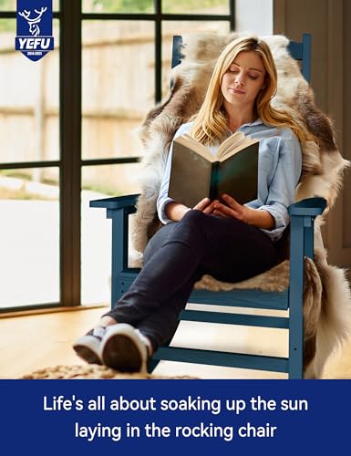 YEFU Outdoor Rocking Chair Oversized,Seat Depth 22",Backrest Height 31",Patio Poly Wide Rocker Chair with 380lbs Weight Capacity,Weather Resistant,for Lawn,Porch,Backyard,Indoor and Garden(Navy Blue)