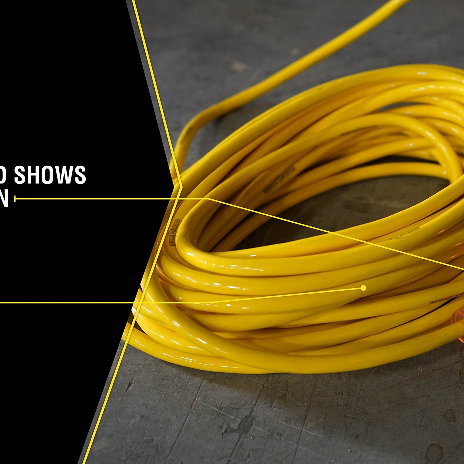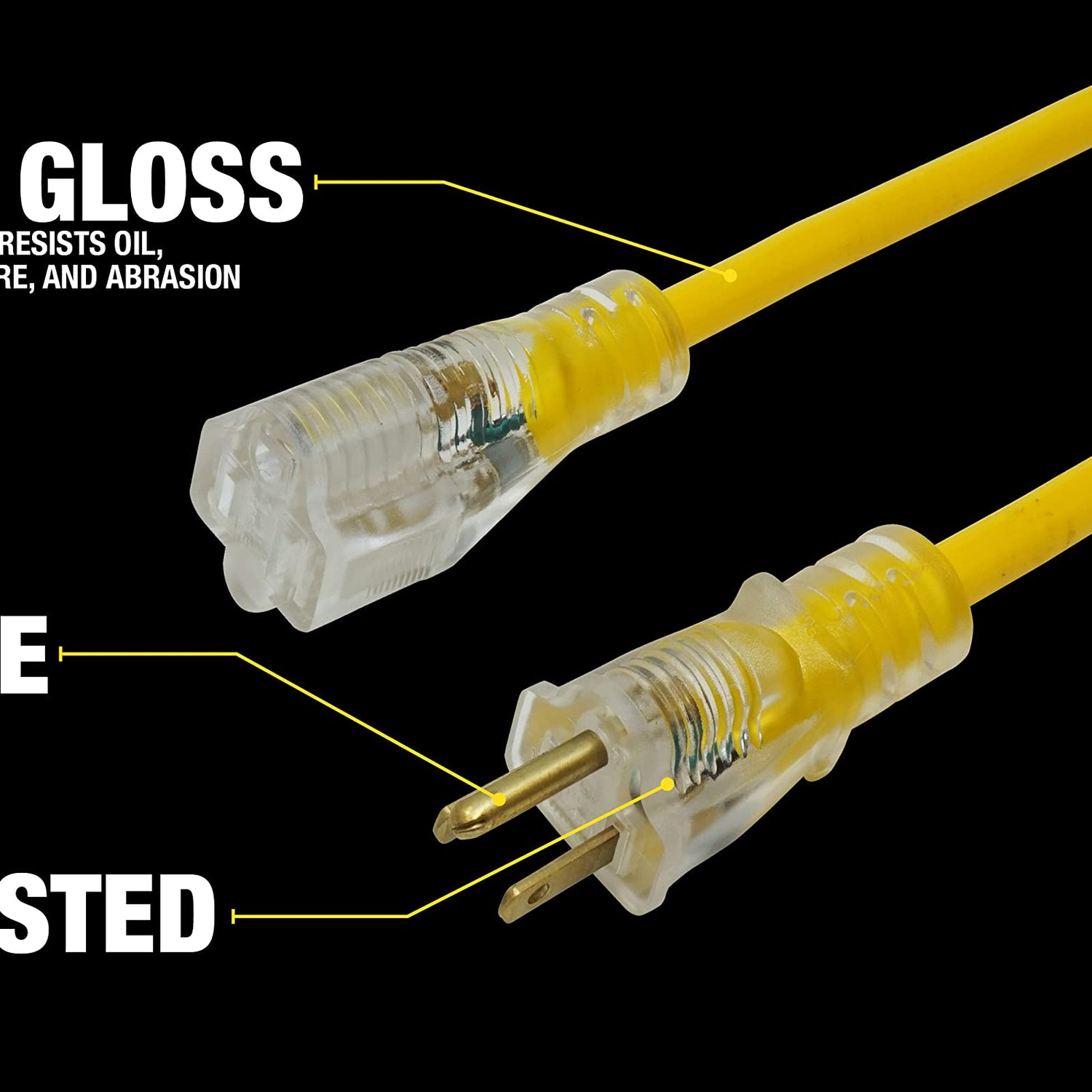 The Yellow Jacket Extension Cord with Lighted Ends is available in 25-foot, 50-foot, and 100-foot lengths , so you'll be sure to find the right cord for the job.