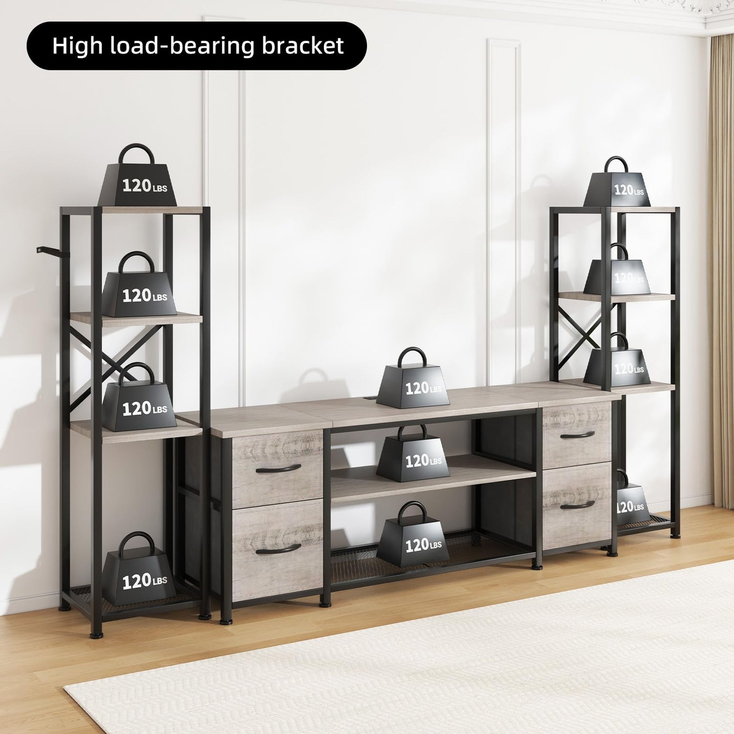 - Multifunctional Storage: The TV Stand features 4 fabric drawer, making it easy to organize your personal belongings. The bookshelf can hold flowerpots, books and audio, etc.