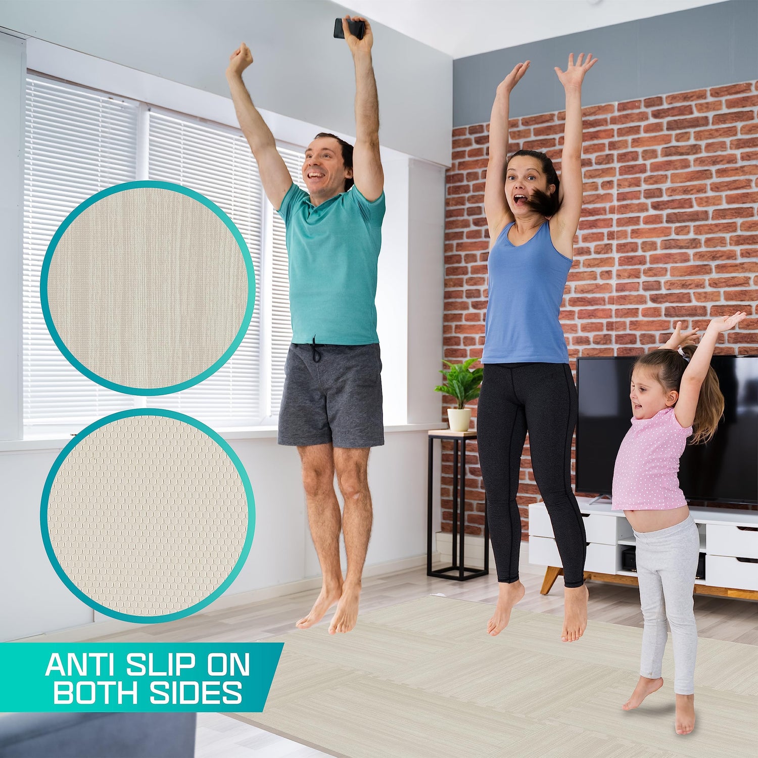 - DURABLE & NON SLIP: The non-skid textured & shock-absorbing surface provides a soft feeling when exercising on, best for comfortable workout area – a combination of high-density EVA foam mat & exercise mat for excellent support and cushion