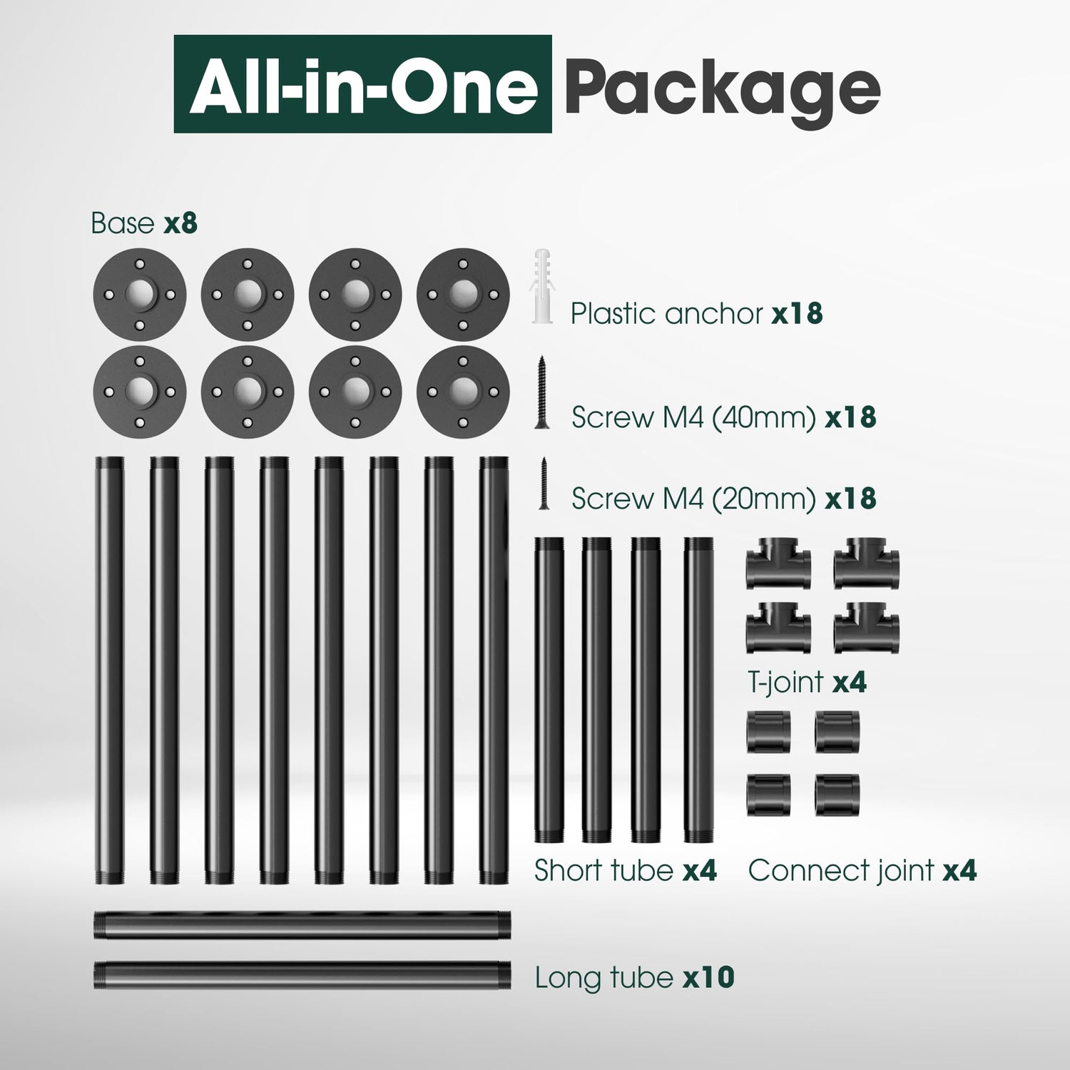 Details: 38-inch H-shape metal desk legs - the ideal addition to your furniture enhancement. Crafted for both style and strength, these counter-height table legs bring a sense of modern sophistication to your space while offering remarkable durability. About our metal table legs: Unique and Modern Design: Our metal desk legs feature a distinctive and contemporary style that seamlessly complements a wide range of interior decor, adding a touch of modern sophistication to your space. Sleek Gloss Black Finish: Our metal dining table legs boast an elegant gloss black powder coating that enhances their aesthetic appeal while also providing durability and anti-rust. Robust Construction: Crafted with 1-inch diameter tubes and a thickness of 1.5mm, our table legs 38 inches are built for sturdiness and strength, capable of supporting up to 400lbs of weight. Versatile & Durable: Whether it's a dining table, coffee table, or workbench, these metal legs for table are versatile and long-lasting, making them a perfect addition to your home or office furniture. Easy Installation: Setting up our kitchen table legs is a breeze, with installation taking just 15-20 minutes. Our package of bar height table legs includes everything you need, from long tubes and solid plates to T-joints, anchors, and screws. Upgrade your furniture with our 38-inch H-shape metal desk legs. Enjoy contemporary design, unwavering strength, and hassle-free setup.