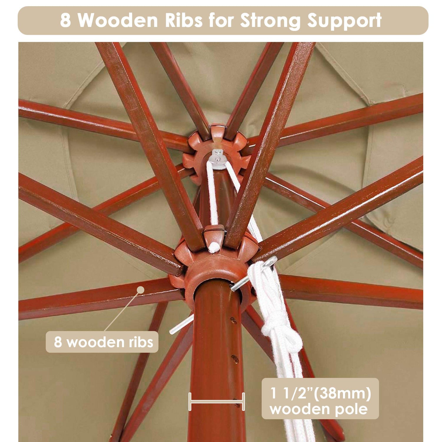Yescom 9ft Tan Wooden Outdoor Patio Table Umbrella with Pulley Market Garden Yard Beach Deck Cafe Decor Sunshade