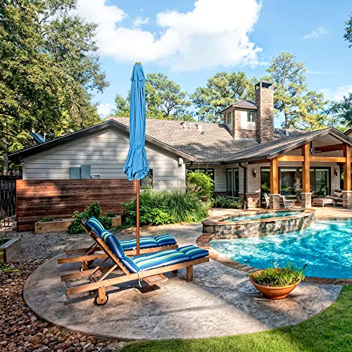 Yescom 9ft Wooden Outdoor Patio Blue Umbrella W/ Pulley Market Garden Yard Beach Deck Cafe Sunshade