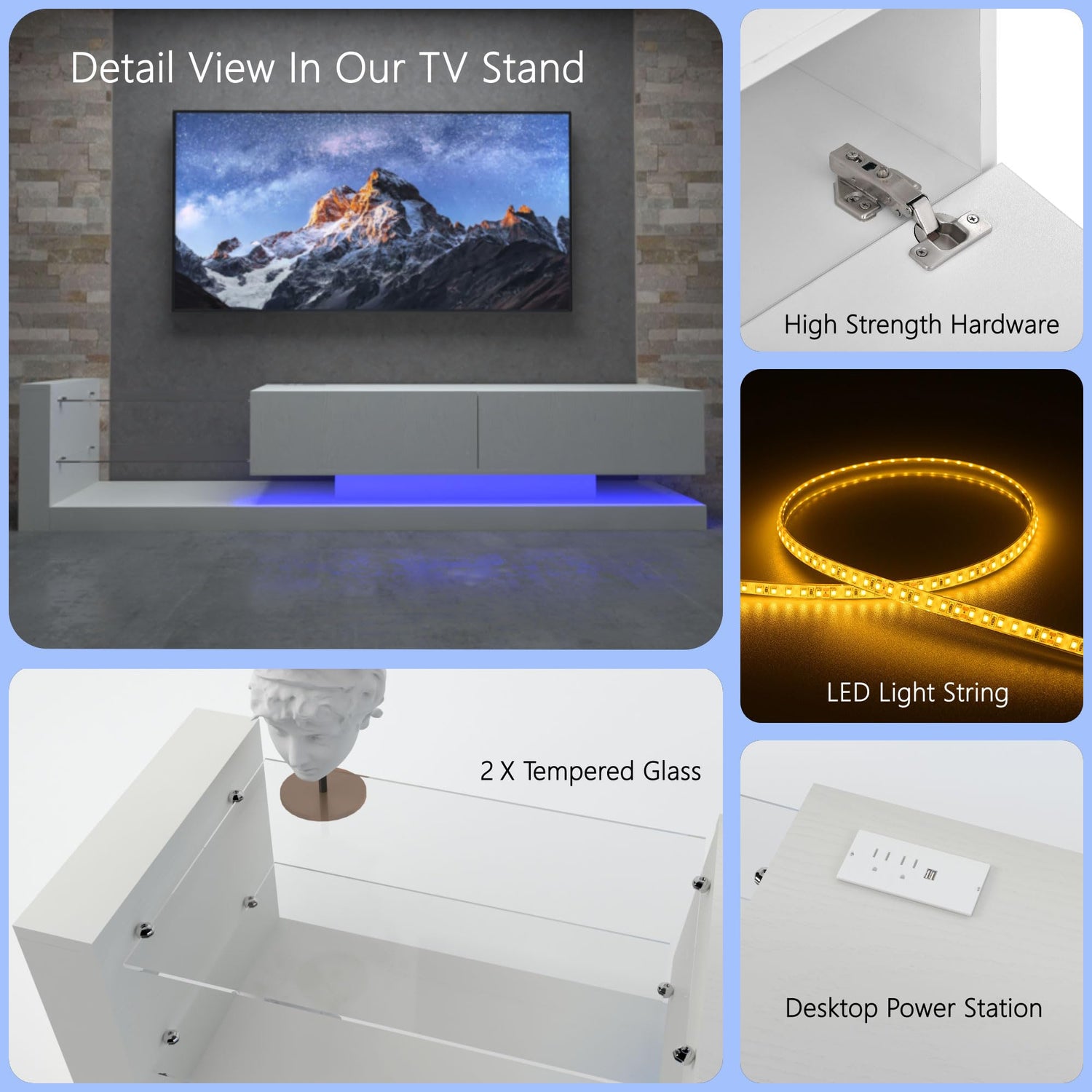 - STURDY AND DURABLE - The white entertainment center is made of 15mm MDF and 4mm thick tempered glass to meet the weight-bearing requirements of everyday life. The TV table features UV matte decals on the sides, top and front with a smooth surface that is simple, elegant and easy to clean. The high quality material ensures stability and good appearance in long-term use