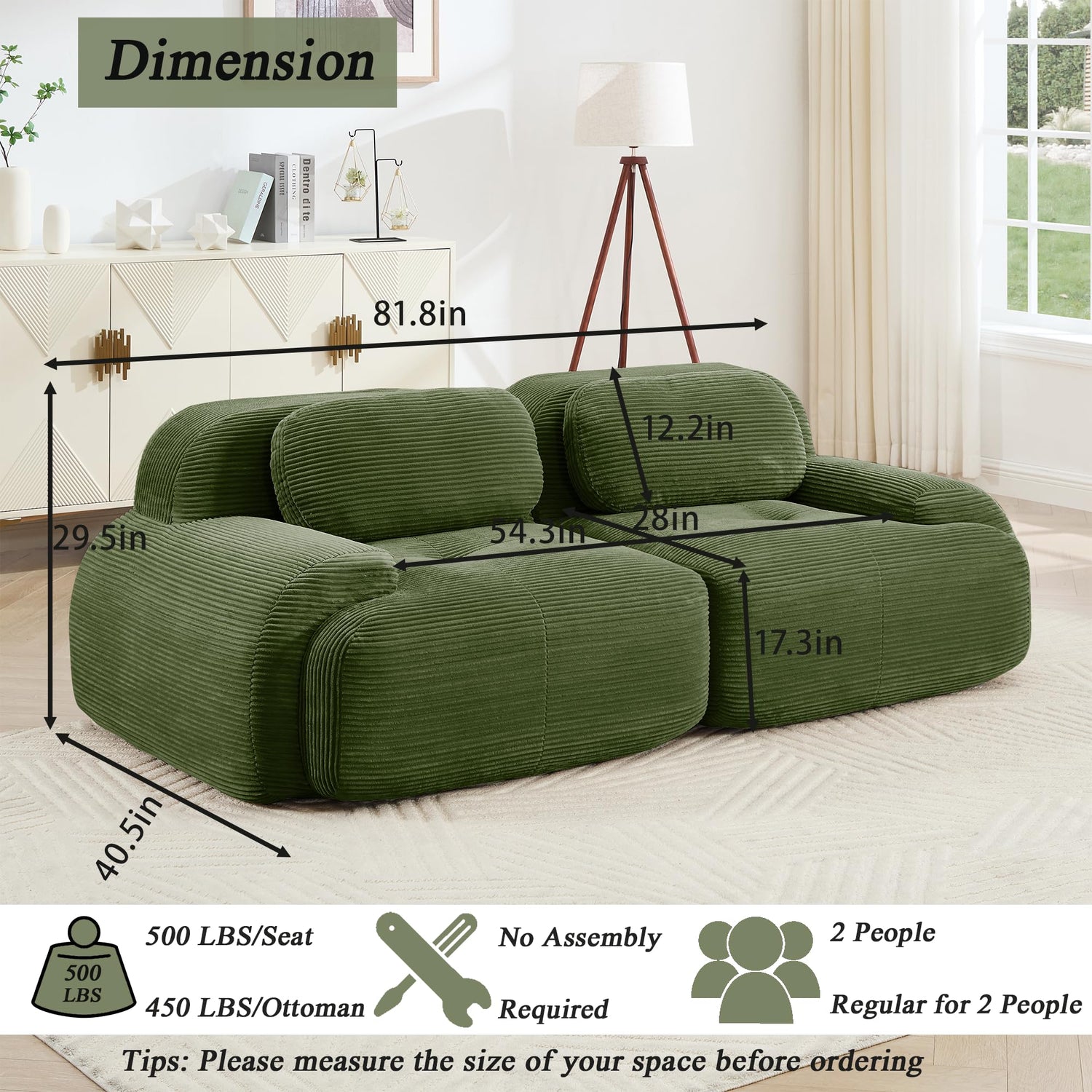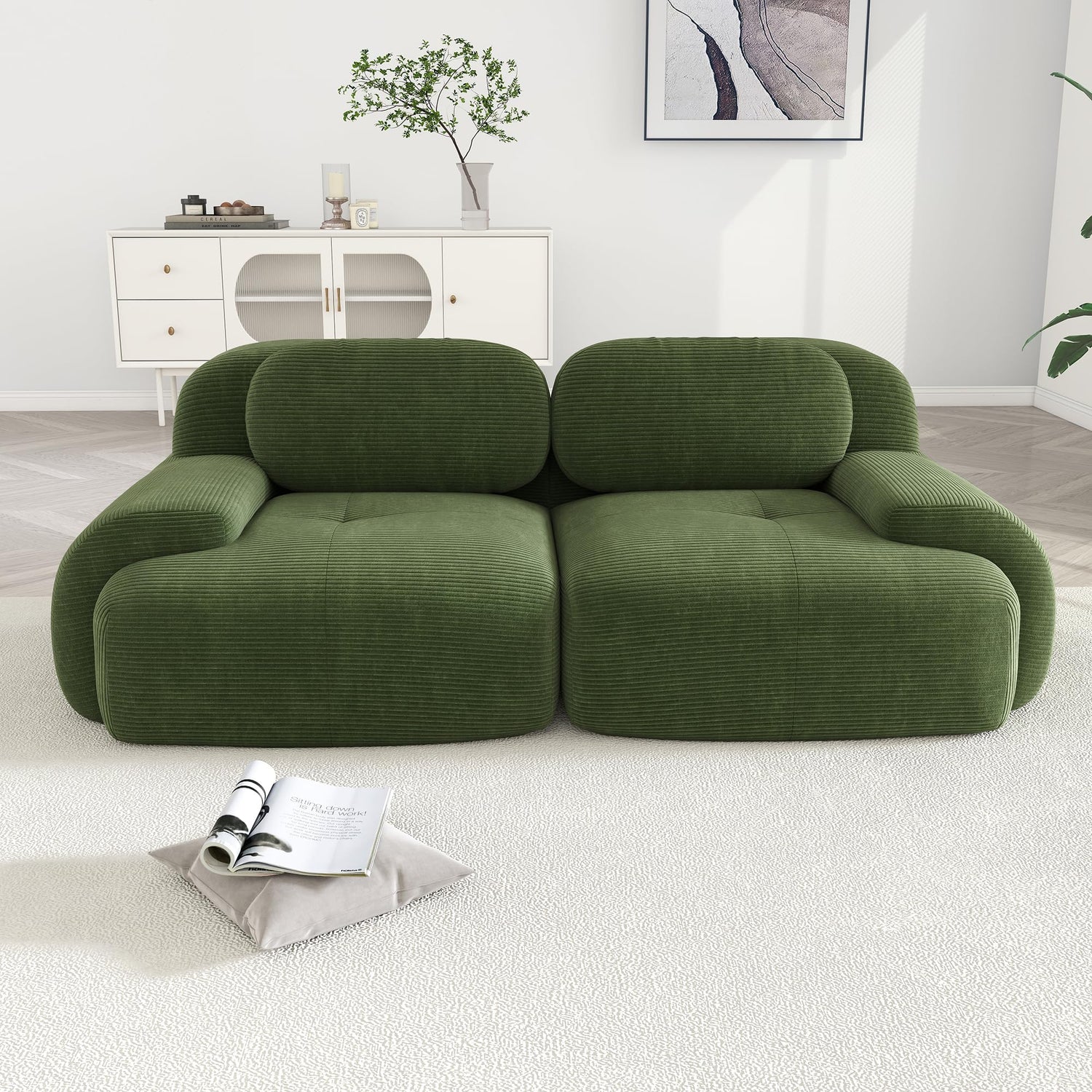 YESER Modular Sectional Sofa Boneless Couch Corduroy Cloud Couch, Modern Deep Seat Sectional Couches for Living Room, 82" Loveseat Apartment Sofa Small Couches for Small Spaces, No Assembly(Green)