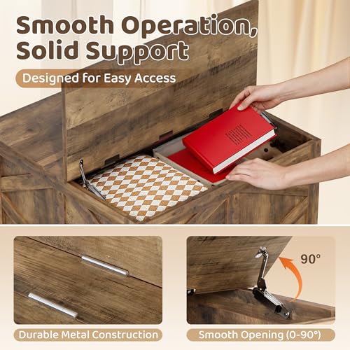 YESHOMY 31.5 inch Farmhouse Coffee Table, Coffee Tables for Living Room, Center Table with Flip-Top Lids, Large Storage Space (Brown)