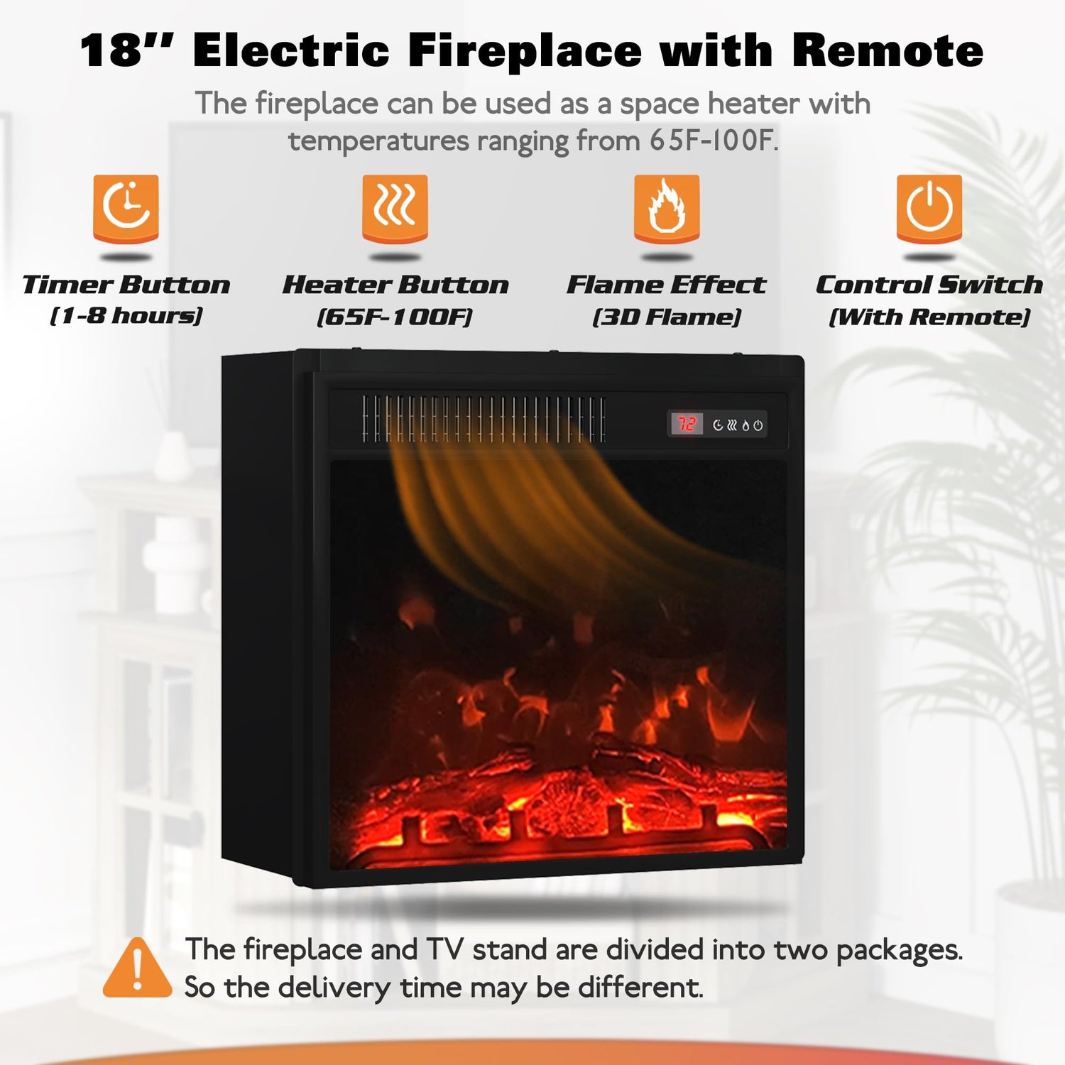 - TV Stand with Fireplace: The item will be delivered in two packages. The TV stand is equipped with a fireplace, which will provide you a warm room to waching television or playing games.