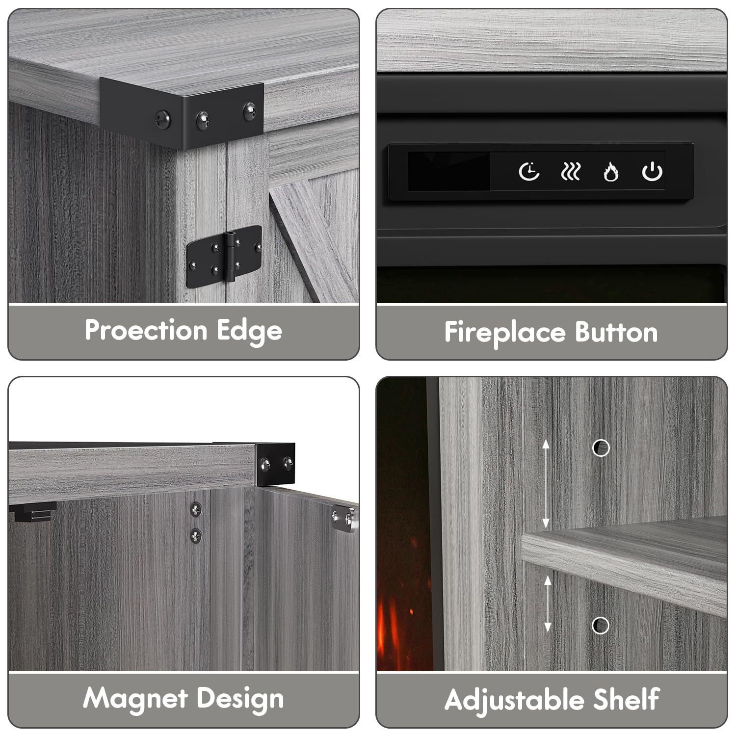 YESHOMY Fireplace TV Stand with Two Barn Doors and Storage Cabinets for Televisions up to 65+ Inch, Entertainment Center Console Table, Media Furniture for Living Room, 58 Inch, Gray Wash