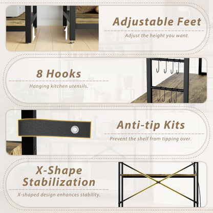 - Multiple Storage Solution: a multi-functional baking rack with ample shelves and S-shaped hooks, perfect for organizing kitchen utensils, small appliances and decorative objects in a well-organized manner.