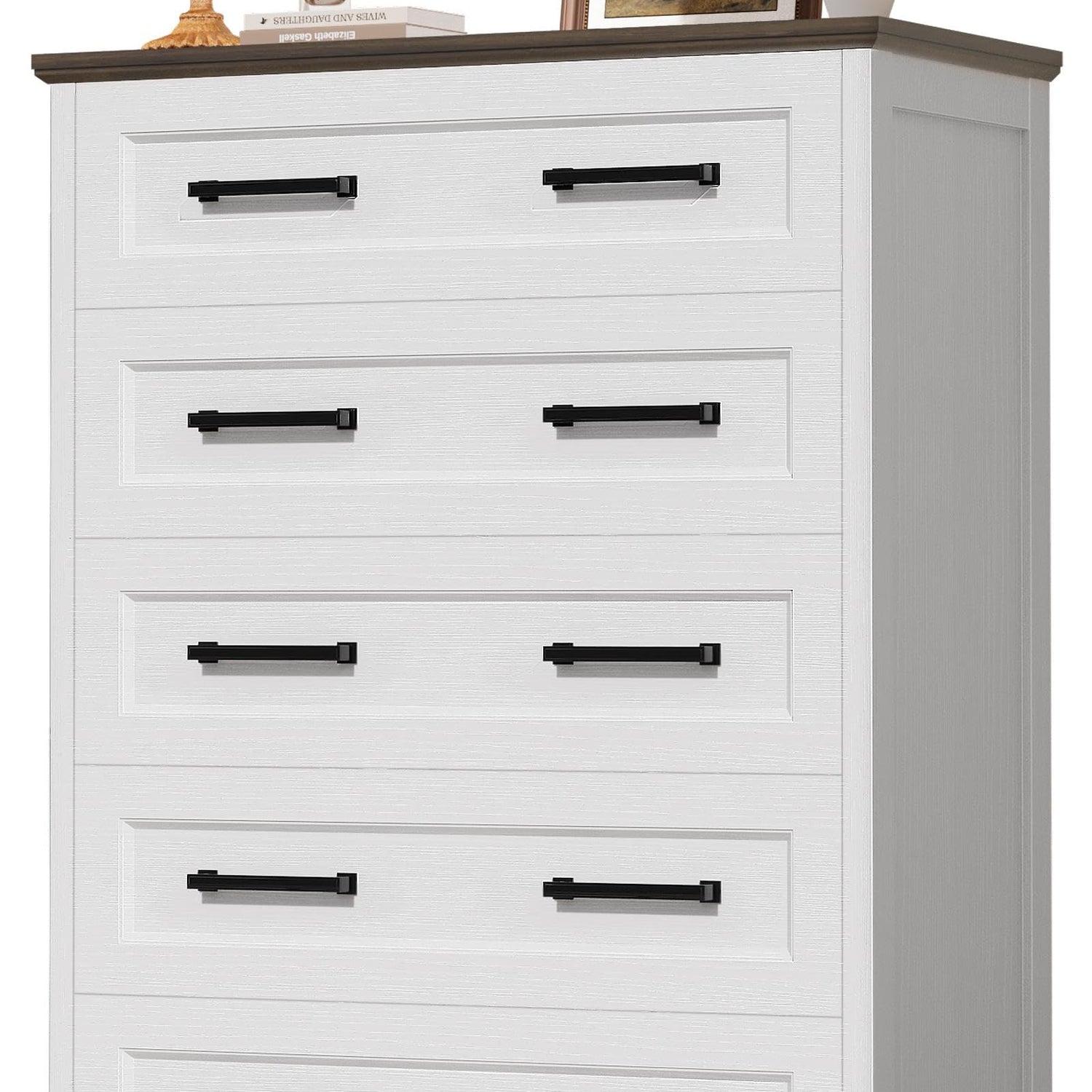 YESHOMY Tall Dresser for Bedroom,Farmhouse 5 Drawers Dresser, Chest of Drawer Chest, Multi-Tier Clothing Storage Cabinet, White and Brown