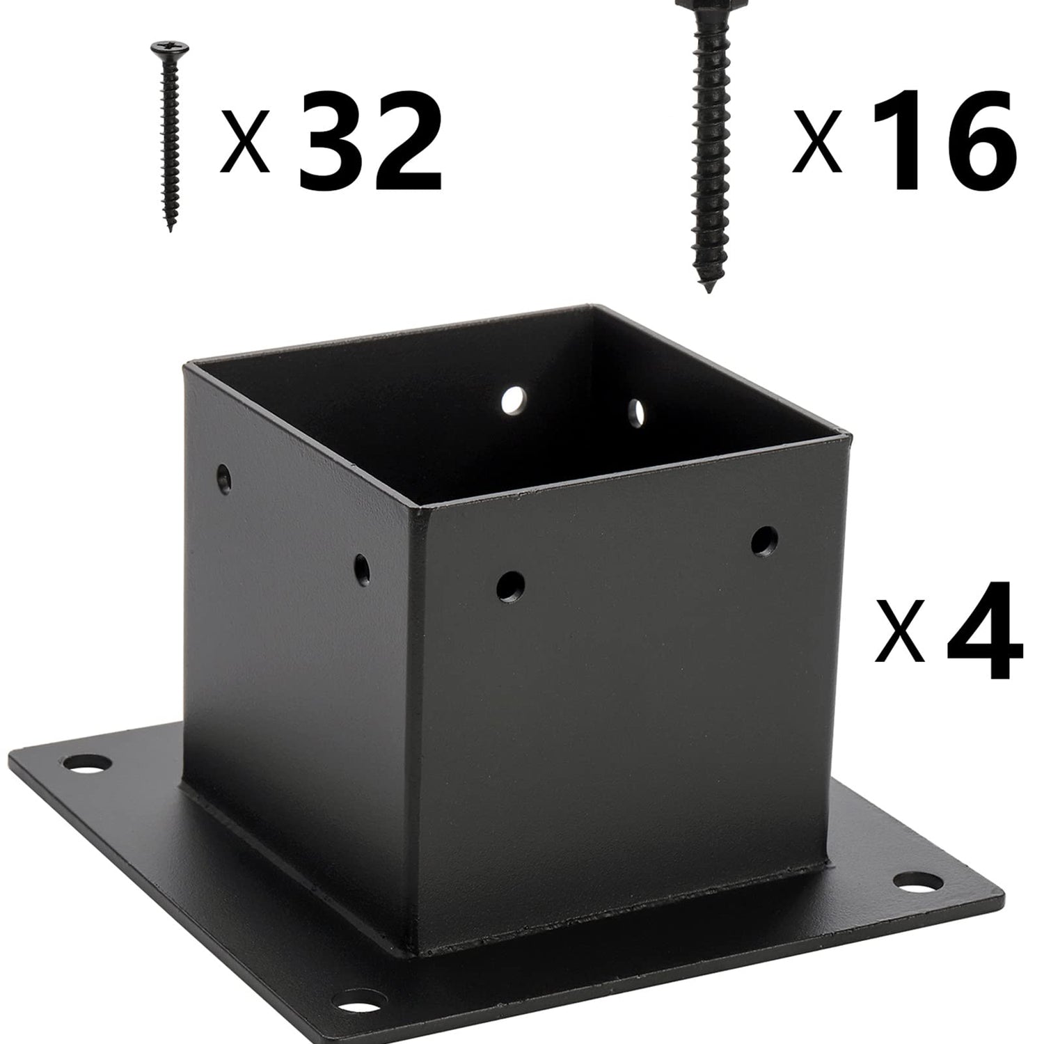 Yesland 4 Pack 4 x 4 Post Base, Inner Size 3.6 X 3.6 Inch Iron Post Bracket with Black Coating Heavy Duty Flange Anchor Base, Support Deck Base with Screws for Pavilion, Deck Railing, Fence, Mailbox