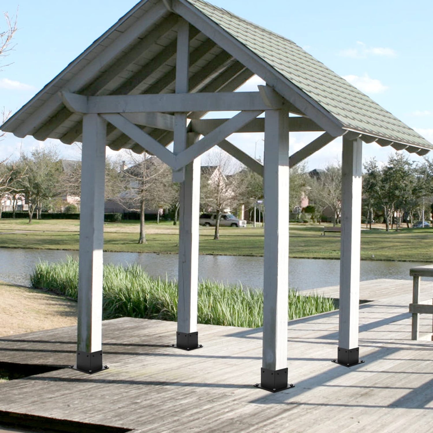 - Heavy duty and versatile post base. Yesland's deck bracket for railing is made of solid iron with black powder coating which is rustproof and strong.