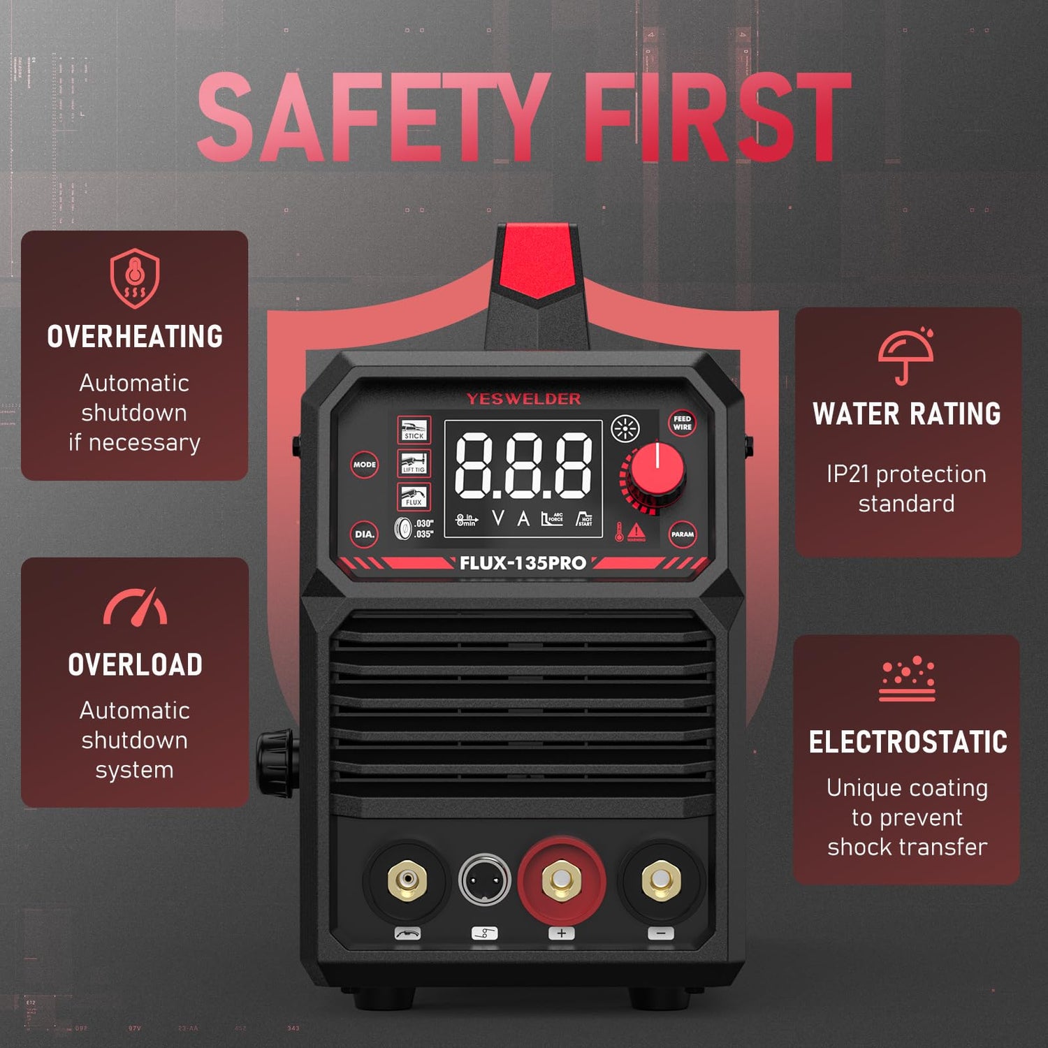 - SAFETY FIRST: Automatic compensation for voltage fluctuation, over current protection, over load protection.