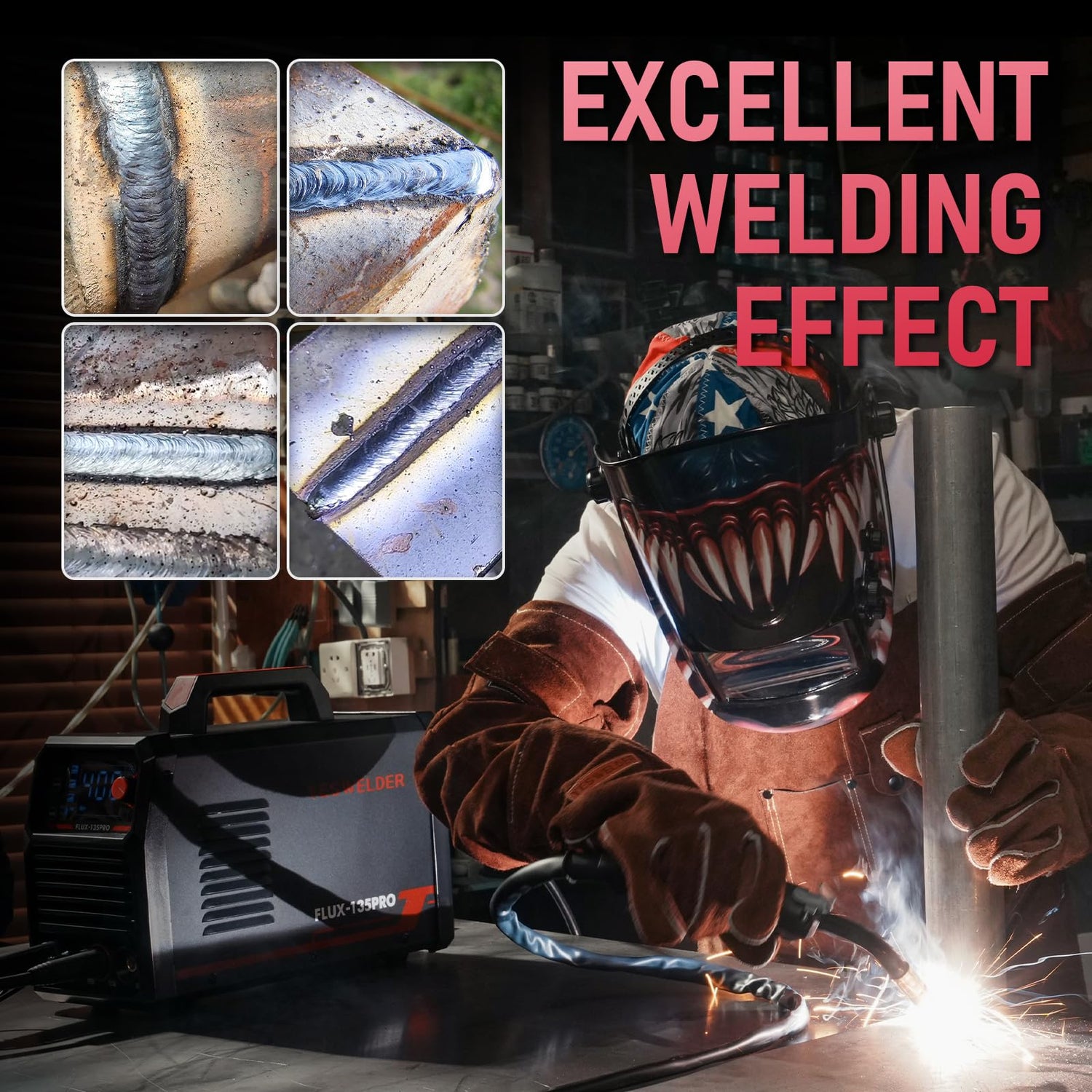 - MORE POWERFUL: Up to 135 Amp output allows you to weld mild steel up to 2/5” in the plate. Suitable for 2LB .030” & .035” flux core wire.