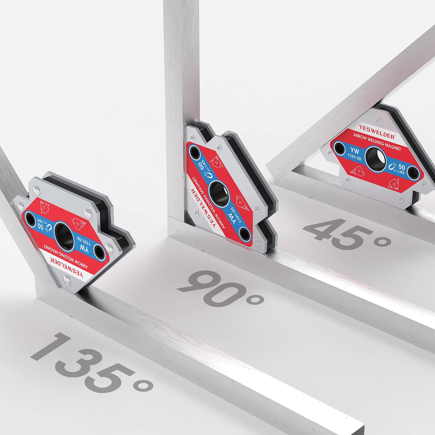 - WORK WITH DIFFERENT ANGLES: The Arrow shape design of this allows you to work with different angles while welding pieces. Can be used for 45, 90, and 135 degree angles.