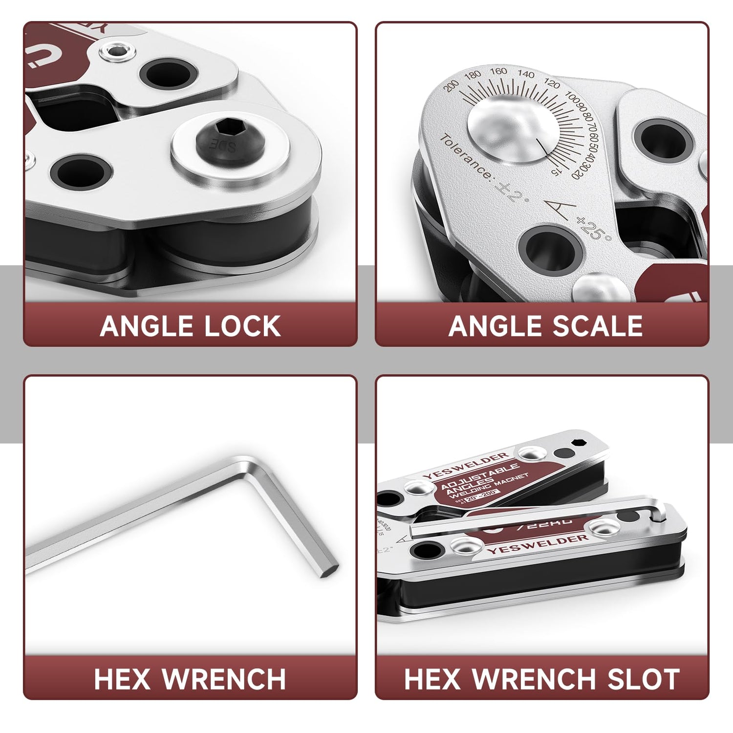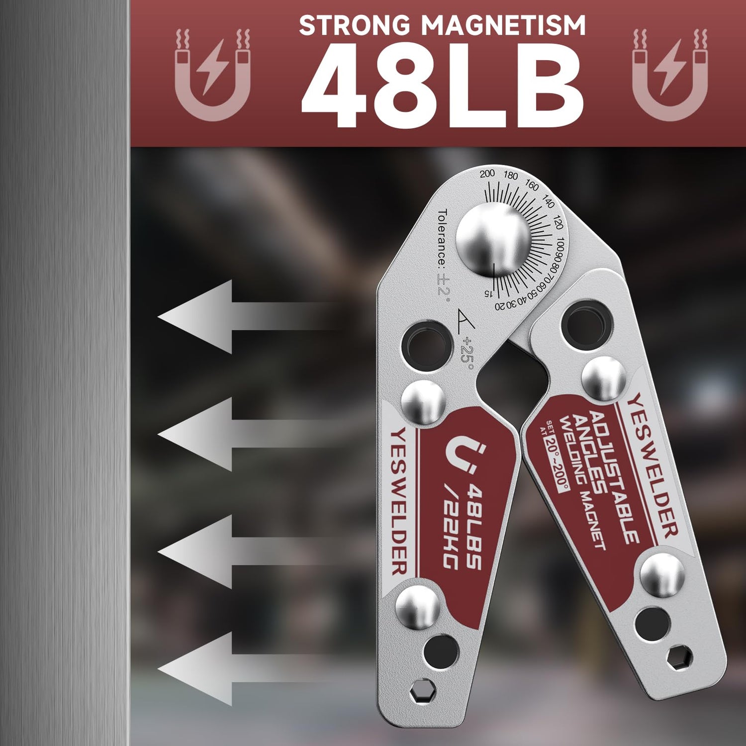 YESWELDER Adjustable Angle Welding Magnet 20-200° Magnetic Welding Holder of 48LBs Holding Power Welding Accessory