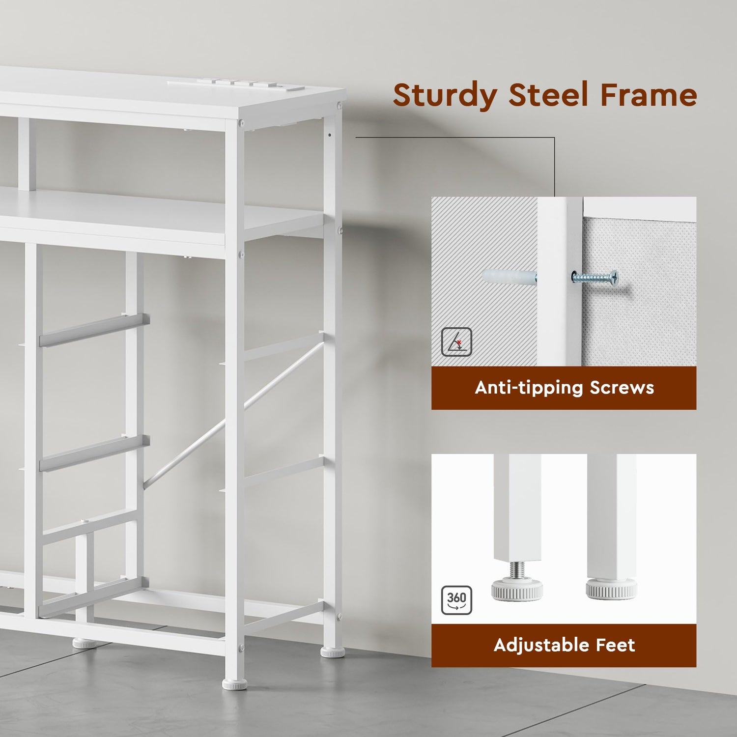 - 【Stable and Durable Wide Tv Stand】Dimensions: 47.2"(L) x 11.7"(W) x 31.3"(H). YeTom white tv stand dresser crafted with a reinforced metal frame and high-quality, easy-to-clean wooden boards. This tv stand dresser offers stability without any wobbling or shaking. Its premium drawers are built to last, maintaining their color without fading over time. Additionally, four adjustable feet not only safeguard your floors from scratches but also adapt seamlessly to uneven ground.