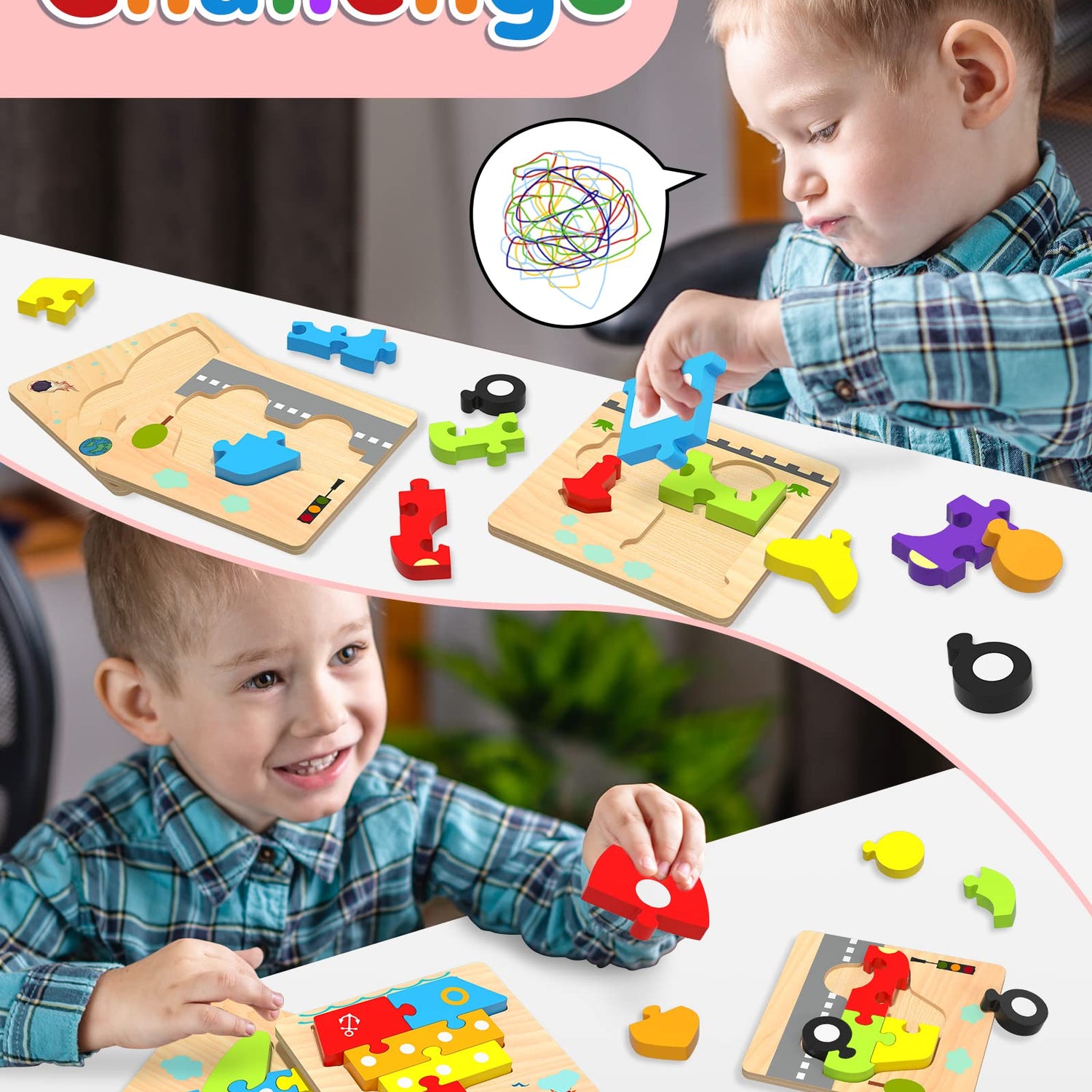 - SAFETY AND HIGH QUALITY:Our toddler puzzles for young kids include high-quality, chunky wooden pieces to ensure tiny hands can easily grasp the pieces and complete the puzzle. The edges of wooden puzzles are smooth , it keeps your 1 2 3 years old plus boys and girls play safely. Your children will love the large, thick pieces of this toddler toy, which are easy to handle and put together.