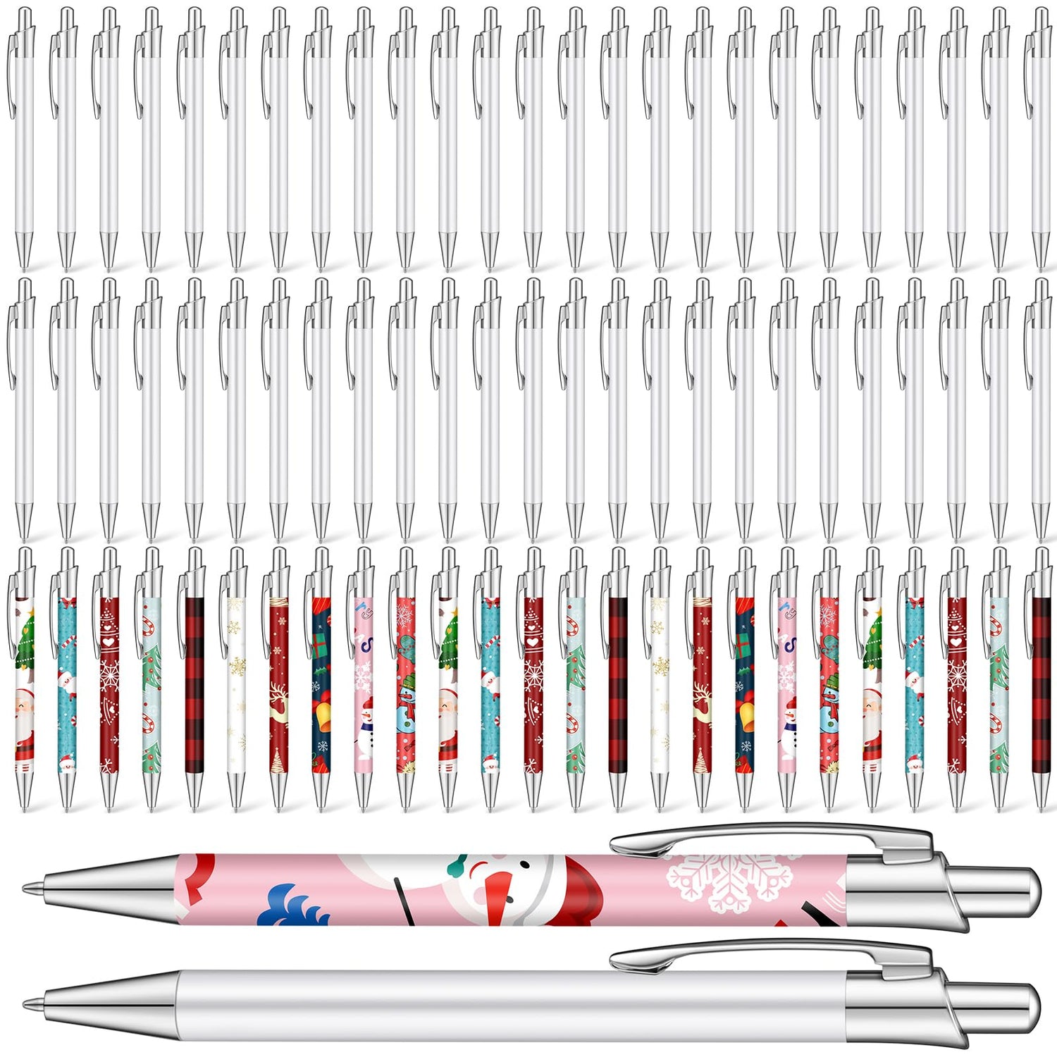 Yexiya Sublimation Pens Blank Heat Transfer Pen Sublimation Ballpoint Pen with Shrink Wrap White Aluminum Customized Clip Pen School Supplies for Christmas Office School Stationery Supplies (50 Pcs)