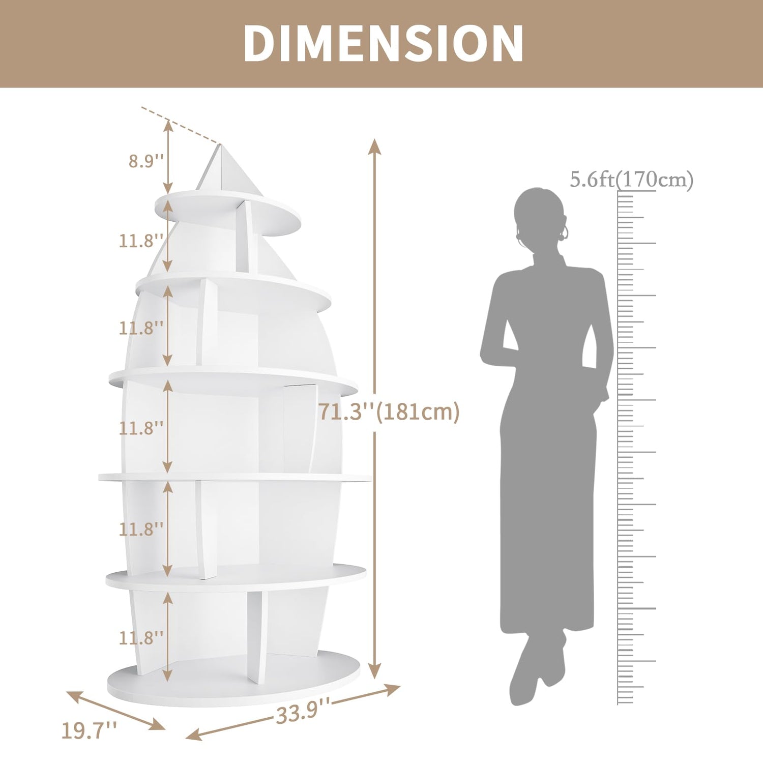 - 72-inch Tall Bookshelf: This bookcase rack assembly's overall dimensions are 20" D x 34" W x 72"H. 6-tier wooden book racks can meet different storage demands.