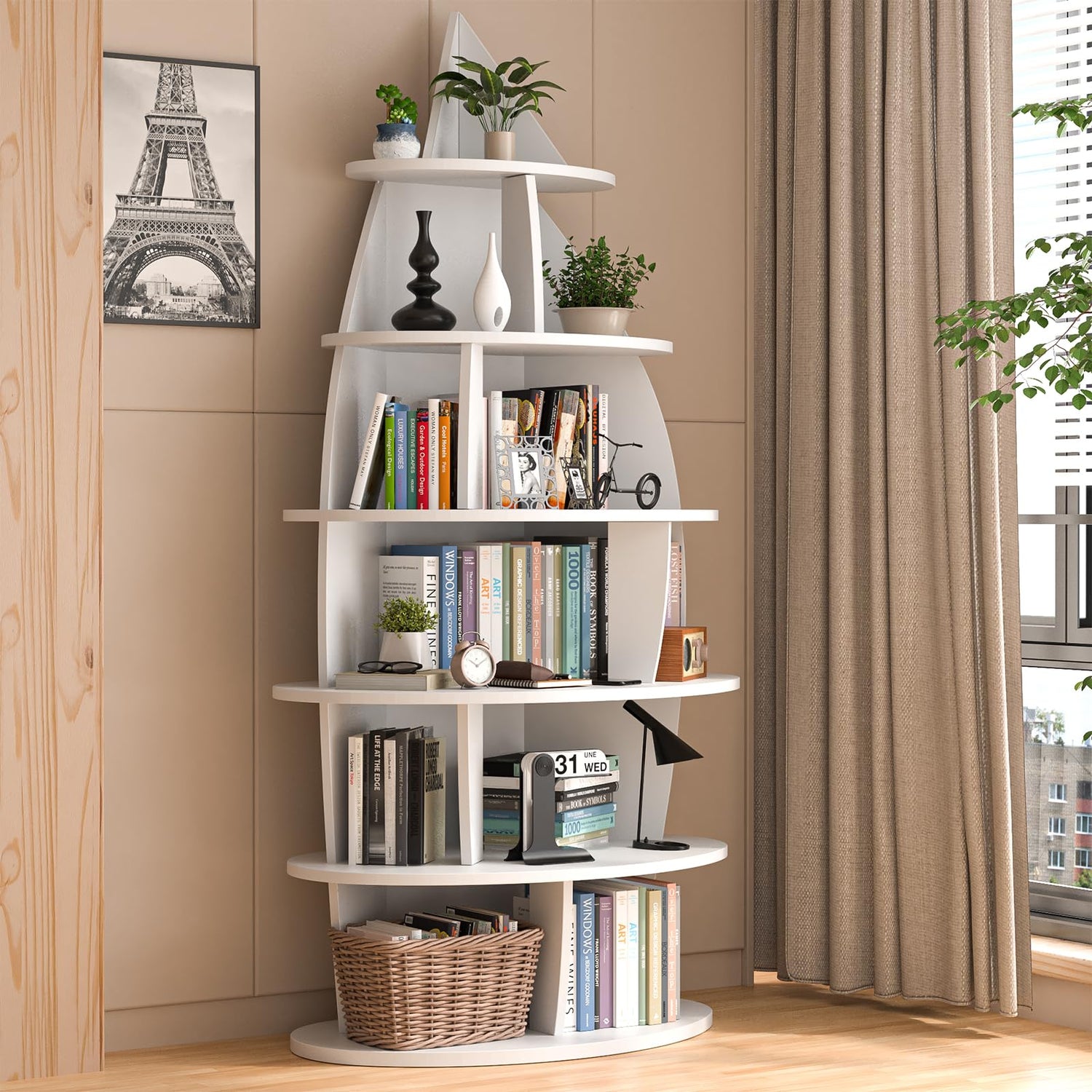 Yeyawomy 72-inch Corner Shelf, 6-Tier Wooden Bookshelf, Floor-Standing Standing Bookcase Storage Rack, Toy Organizer Cabinet Chest, Book Display Shelf, White