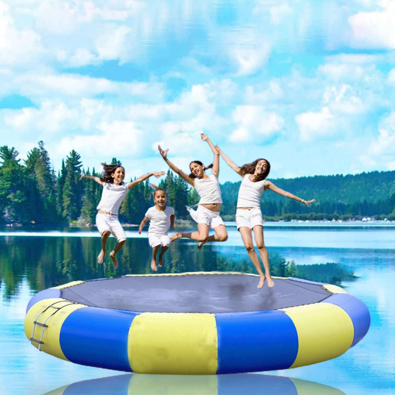 - ❊COMPLETE ACCESSORIES --- For your better enjoyment of water sports, we provide electric air pump and 4-step rope ladder in the water trampoline package. Therefore, it is ideal for summer family vacations by the lake.
