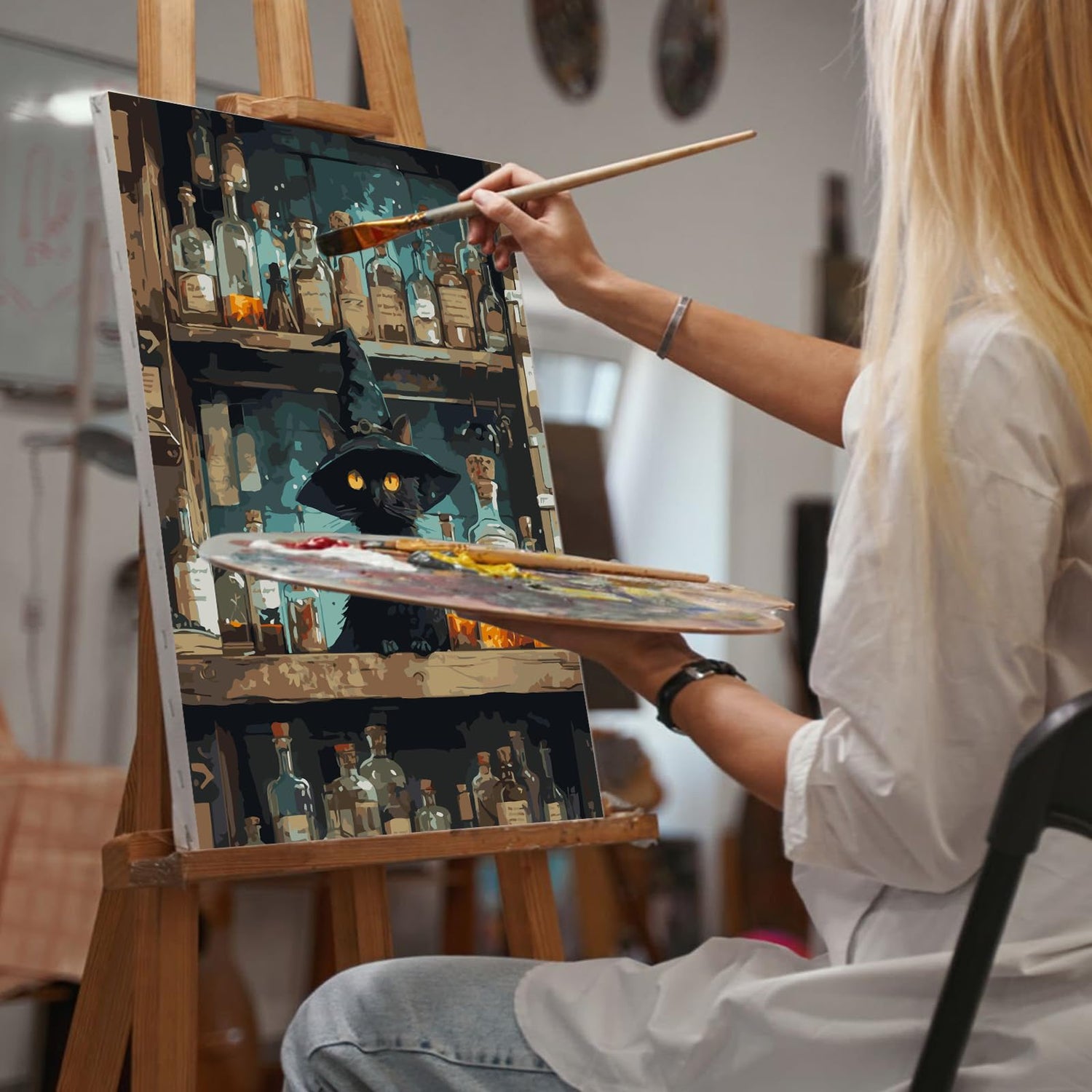 Yezavesu Black Cat Paint by Numbers Kit for Adults Beginner, Magic Adult Paint by Number Kits on Canvas Without Frame, DIY Acrylic Cat Painting by Numbers for Home Wall Decor Gift 16x20 Inch