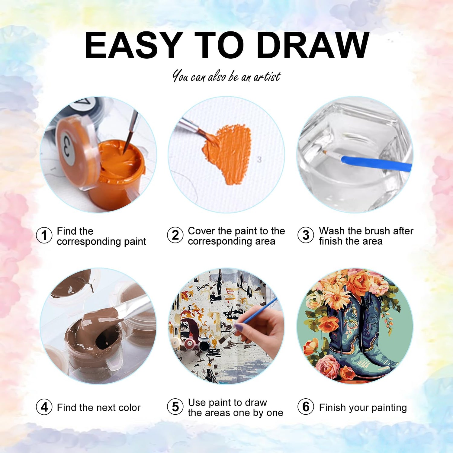 - Paint by number for adults: Our paint by numbers kit for adults beginner uses color canvas, making it easier for you to distinguish each color block; Acrylic paints are full of vibrant colors, waterproof and fade-free when dry, and the digital painting will last for many years after it is complete