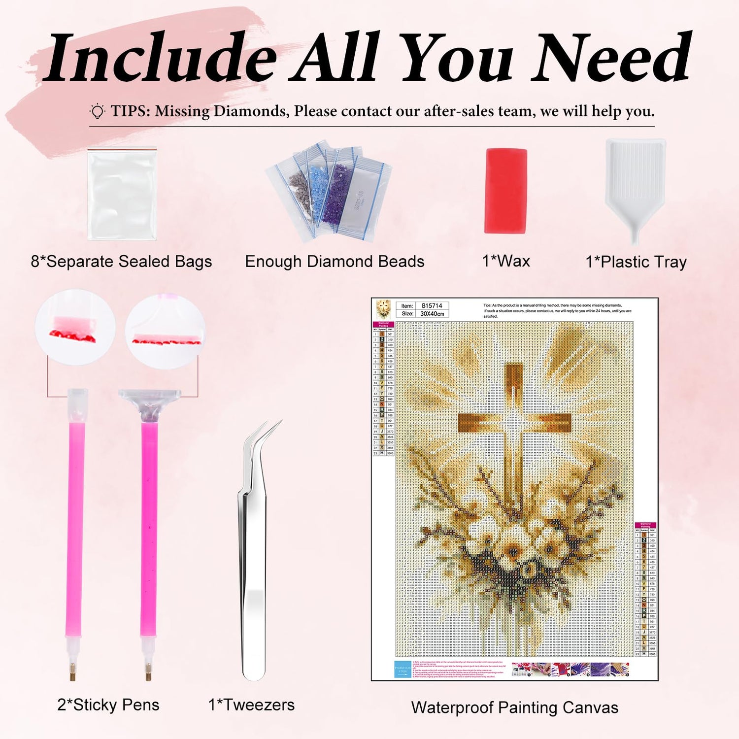 - Diamond art kits for adults: Each diamond art kits comes with all the tools needed. 1*HD painting canvas, 2*diamond pens, 1*glue, 1*diamond tray, 1*tweezers,8*spare self-sealing plastic bags, and Individually packaged colorful round diamonds (30% more diamonds)