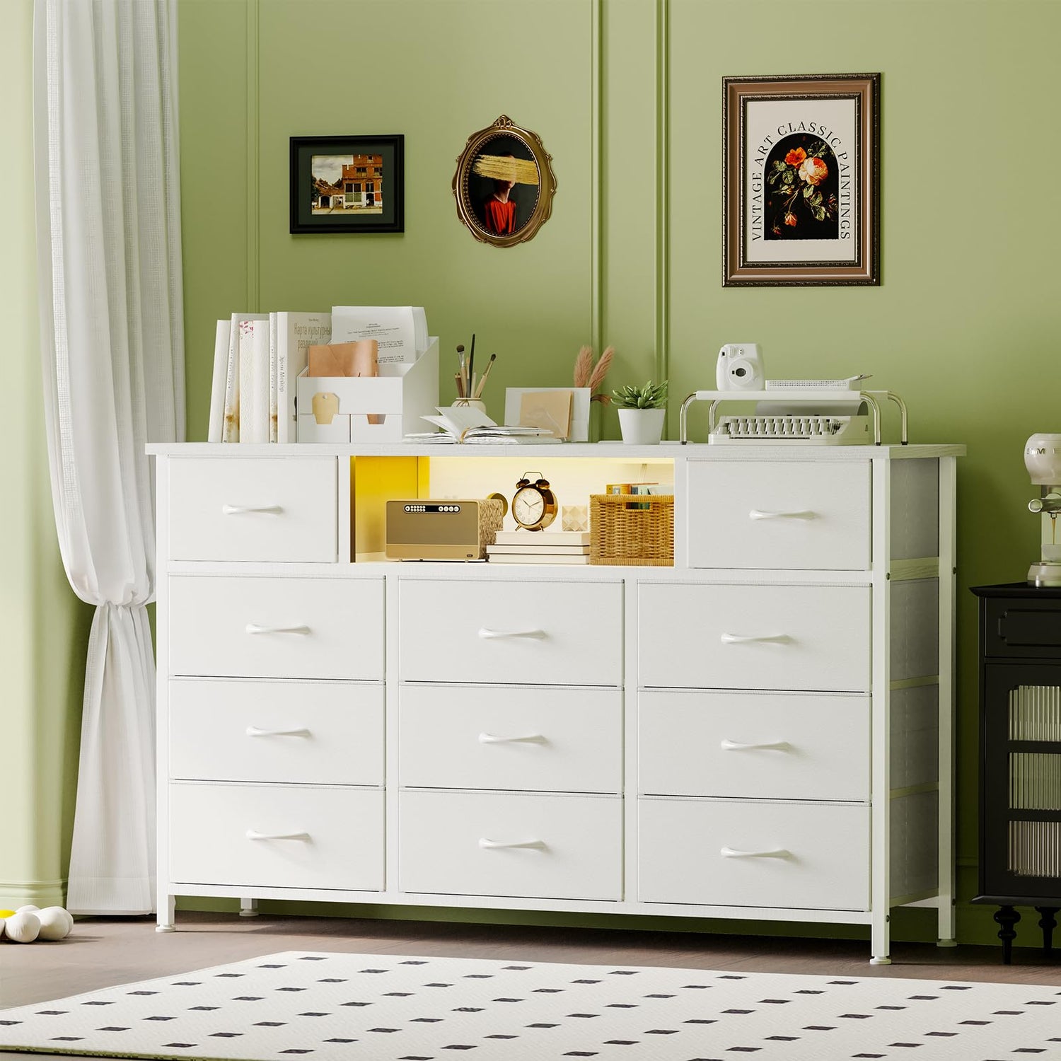 - Detailed Categorization & Efficient Storage: With 11 drawers and open storage space, the dresser provides ample storage space for your bedroom, closet, hallway or nursery, keeping your belongings organized and easily accessible. The different sized drawers allow you to properly organize different kinds of items and more, with clear categorization at a glance.