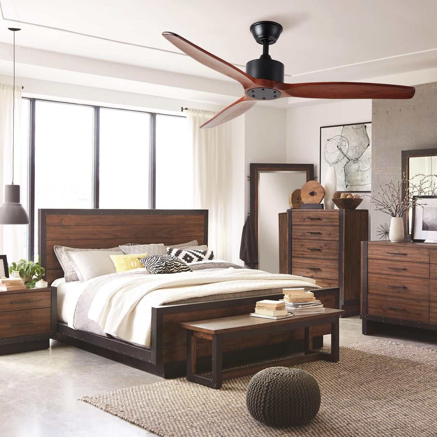 - 【Modern Walnut Ceiling Fan】: Integrated in a contemporary design, the 52 inch modern ceiling fan is made of painted matte black metal body and 3 handcraft carved wood propeller blades which are solid and durable. The ceiling fan with remote has unique aesthetic effect and attractively compliments any home decor, enhances your decorative beauty. Minimalist retro style with propeller shape can be an eye-catching ceiling fan.