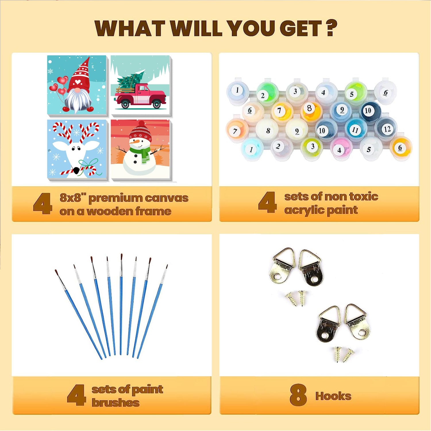 Details: 4 Packs Framed Chrsitmas Paint by Numbers Kit for Kids Ages 8-12,Snowman Easy Acrylic Paint by Number Framed on Canvas,Number Painting Paint by Numbers Kit for Home Wall Decoe 8x8inch