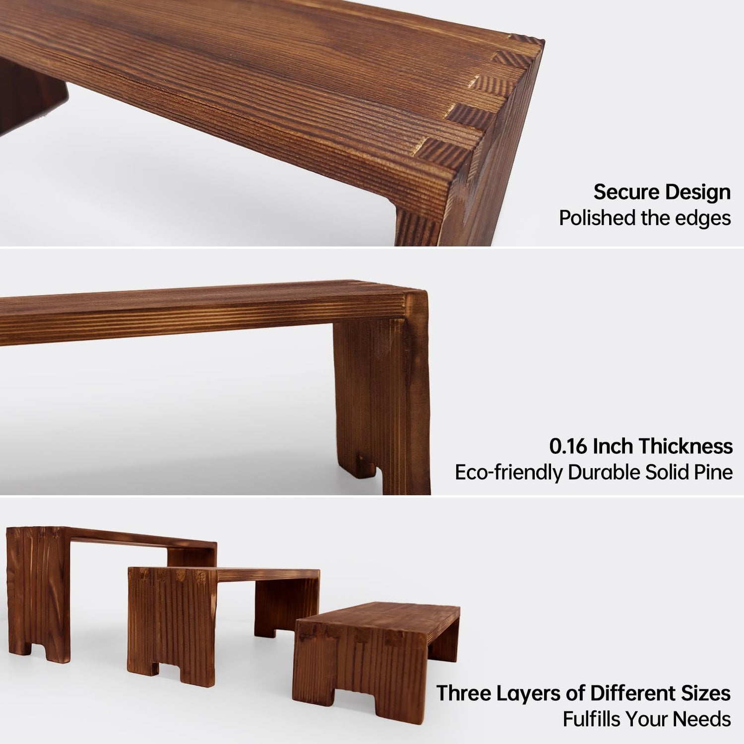 - Nature Sstyle: Natural solid pine charcoal-colored display risers complement primitive, farmhouse, and rustic decor, with a natural wood scent that brings back the beauty of nature.