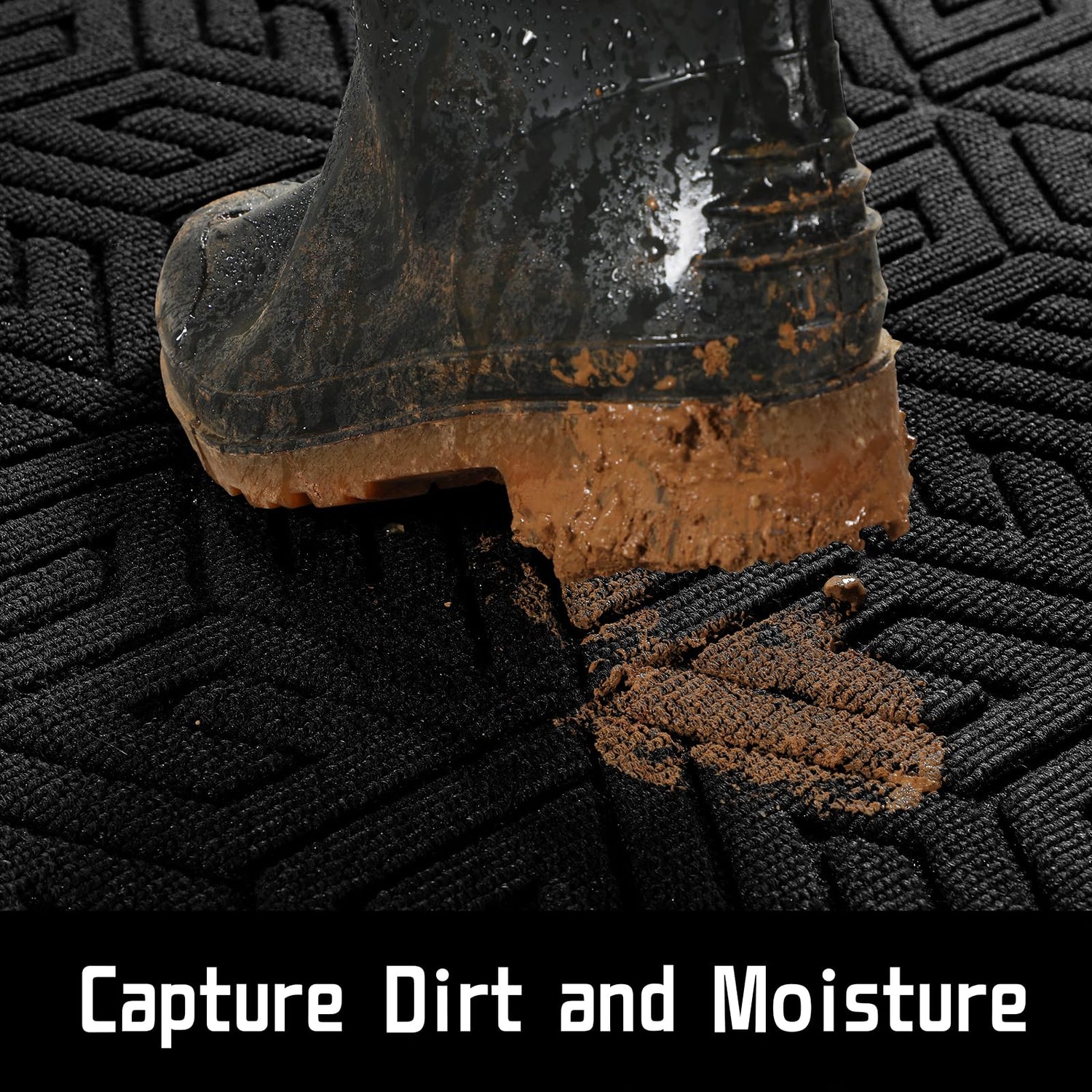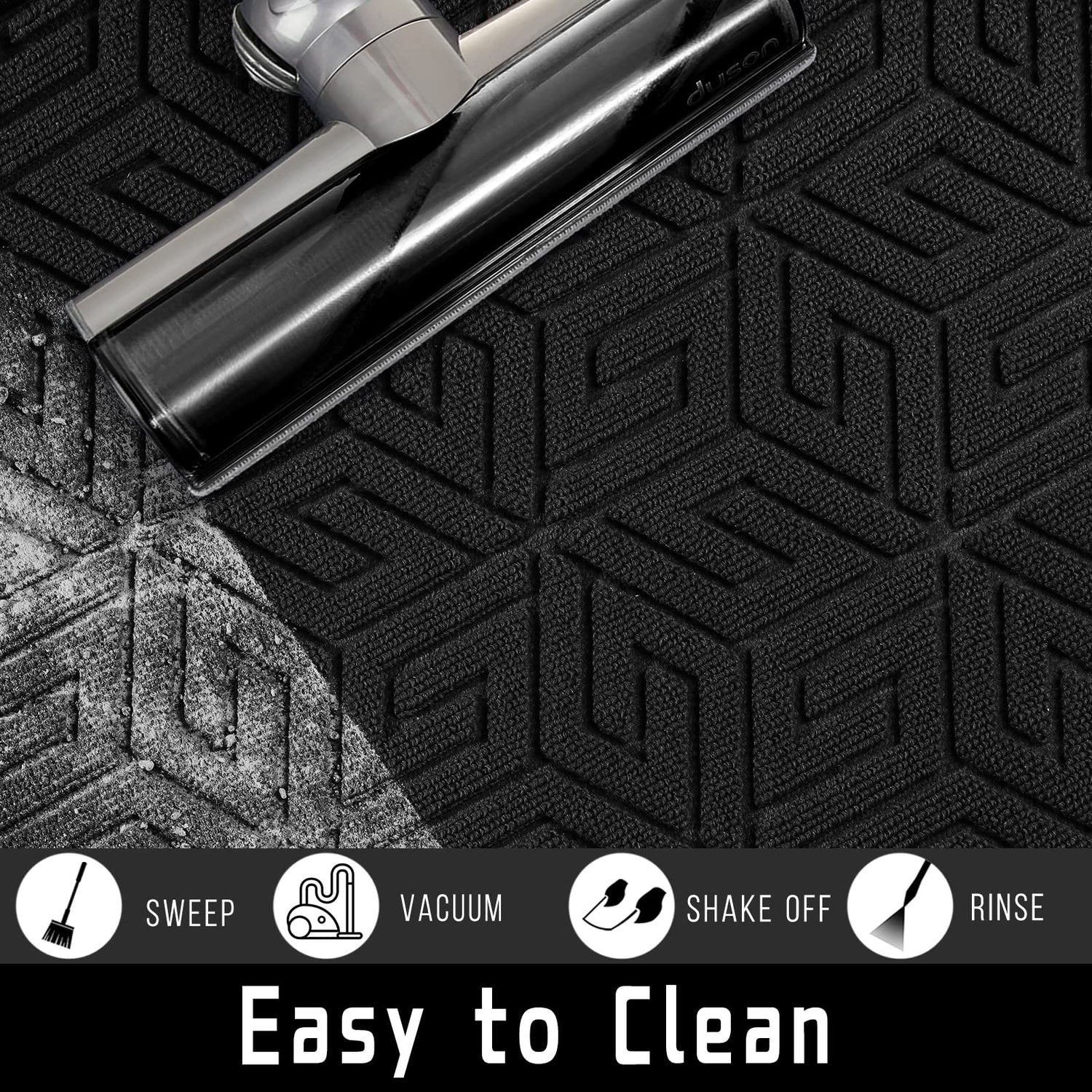Yimobra Sturdy Front Entrance Door Mat, Heavy Duty Outdoor Indoor Doormat Entryway Floor Mat, Non Slip Rubber Backing, Easy Clean Shoe Scraper, Waterproof, Patio, Lawn, 17x29.5 Inch, Black