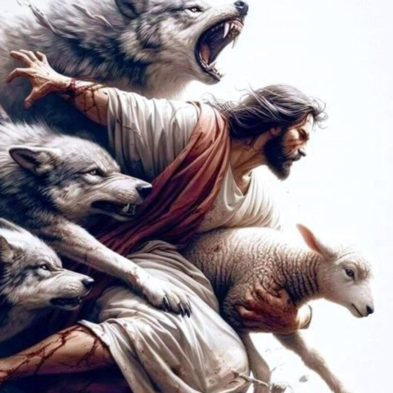 YIMORE 5D DIY Diamond Art Painting Kits Christ Jesus Wolf and Lamb 16X20 inches for Adults ,Full Round Drill Rhinestone Embroidery for Home Wall Decor