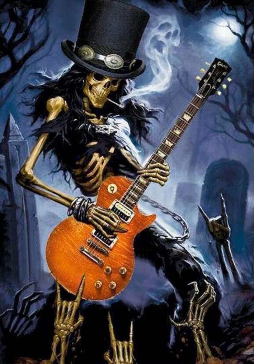 YIMORE 5D DIY Diamond Art Painting Kits Flower Arts ,Full Round Drill Crystal Rhinestone Embroidery for Home Wall Decor (Skull Guitar)