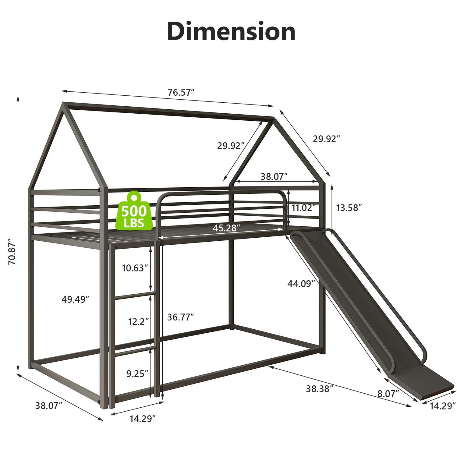 - Fun Bunk Bed Design: This house bunk bed, with triangle roof, make the bed a house shape.ladder and slider provides playtime place for your private room and time. The position of ladder and slide can be exchanged, provides more fun for sleeping on it.