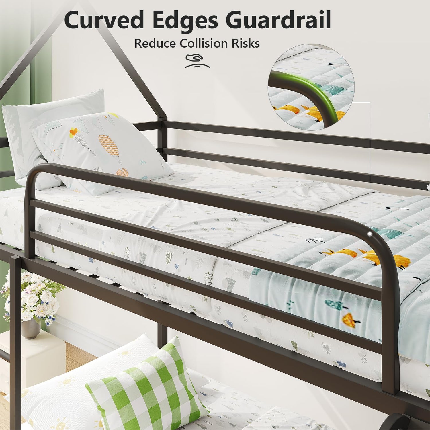 - Enhanced Safety: Featuring 11.2-inch sturdy guardrails and an integrated ladder, this bed offers additional security against accidental falls. The guardrails are designed with smooth, curved edges to prevent bumps and injuries, ensuring it is safe from hazardous materials and potential harm.
