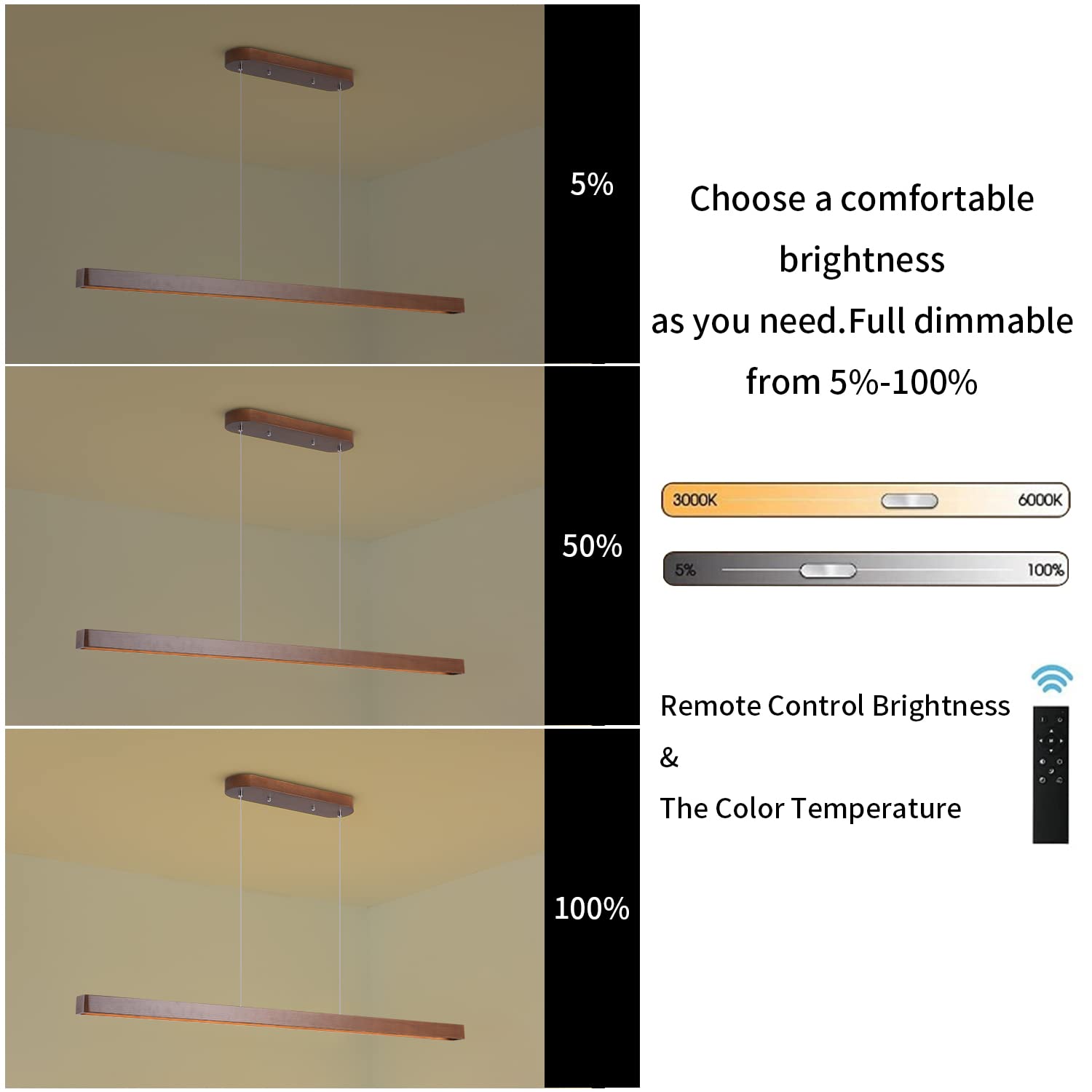 - 【Ultra Big Size 71inches Linear Pendant Light】This LED linear pendant light wooden lights body parts:71x 2.36 x 1.77 inches(l*w*h). the mounting part:18.9 x 4.3 x 1.4 inches(l*w*h) can cover native american electrical box.the rest of the piece is kept simple, hung with cables from a matching rectangular canopy. contemporary in both style and application, the minimalism aesthetic paired with energy efficiency creates a truly modern lighting option.cable length is adjustable up to 78 inches.