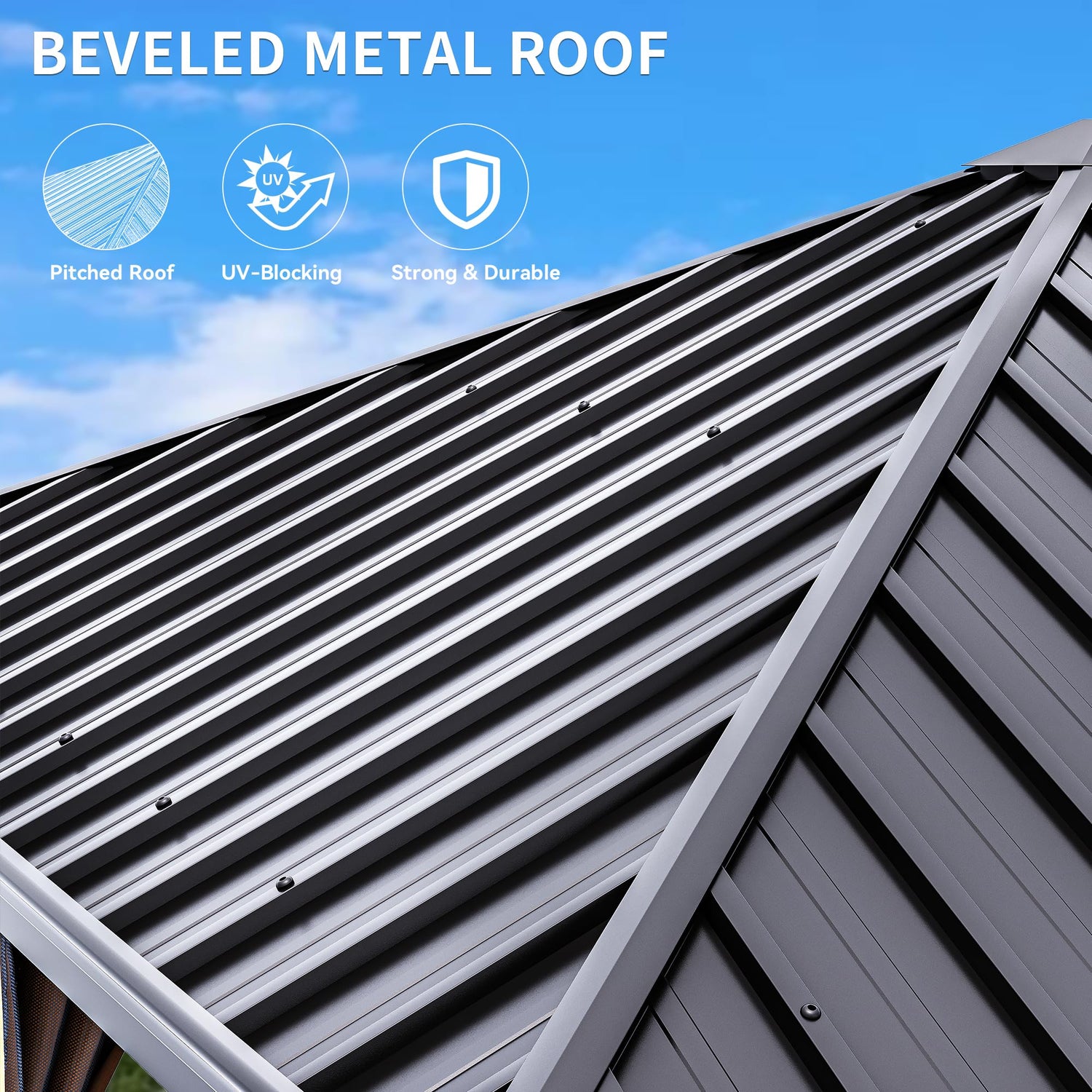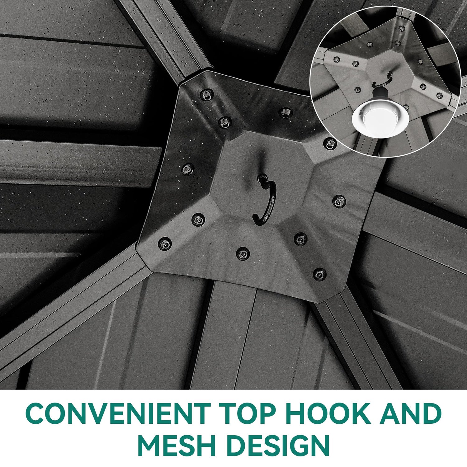 - GALVANIZED IRON TOP- Features a galvanized iron sheet top that prevents fading and prolongs service life. The middle of roof has a hook that can be hung with electric lights or fans to boost your pleasant outdoor time