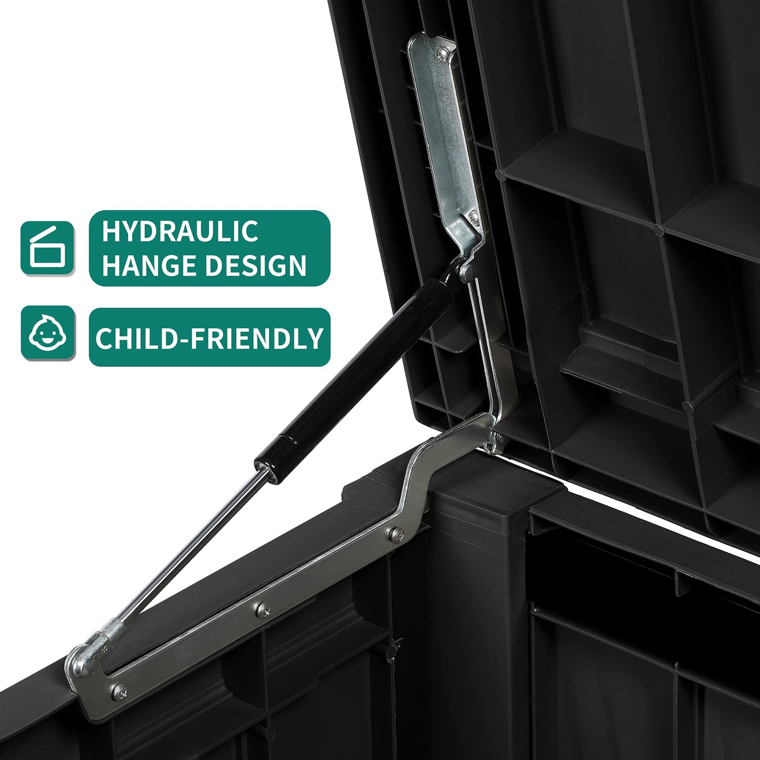 - EASY TO USE- Hydraulic hinge provides smooth, anti-slam closing; It’s easy to reposition thanks to the built-in handles, and secure your items with lockable lid; Two people assembly in 15 mins with tools included