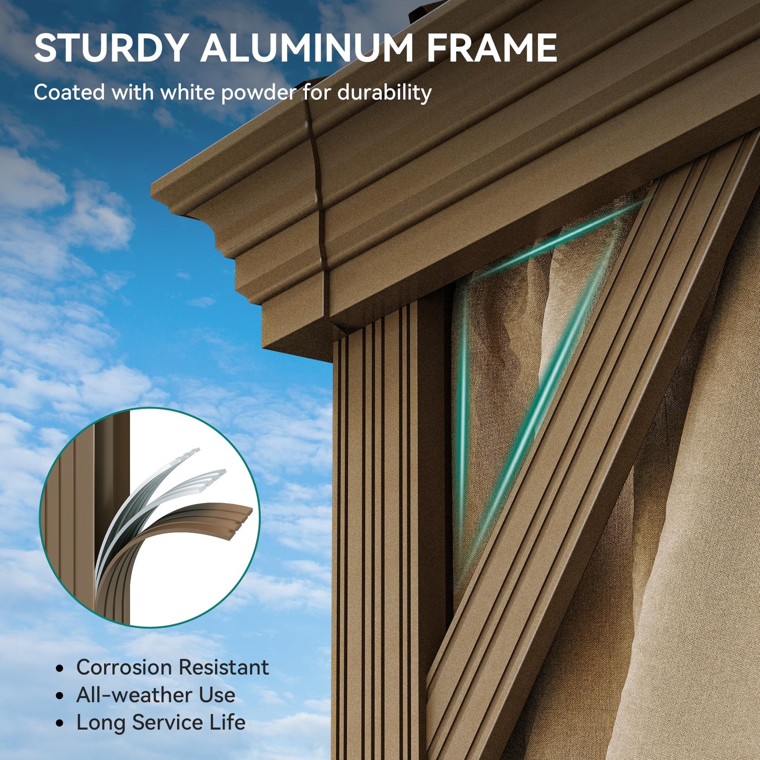 YITAHOME 12x16 ft Hardtop Gazebo with Nettings and Curtains, Outdoor Heavy Duty Aluminum Gazebo Combined of Horizontal and Vertical Stripes Roof for Patio, Backyard, Deck, Lawns and Balcony (Bronze)