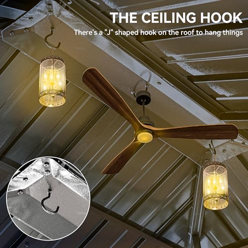- DOUBLE GALVANIZED IRON TOP- Features a galvanized iron sheet top that prevents fading and prolongs service life. The roof is double top vented for optimum airflow and comfort during periods of strong wind. The middle of roof has two hooks that can be hung with electric lights or fans to boost your pleasant outdoor time