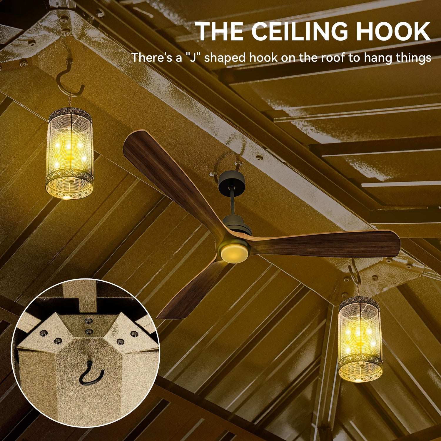 - DOUBLE COMBINED ROOF- The roof of the gazebo combined by small horizontal stripes top and large vertical stripes top; Features a galvanized iron sheet top that prevents fading and prolongs service life. The roof is double top vented for optimum airflow and comfort during periods of strong wind. The middle of roof has 3 hooks that can be hung with electric lights or fans to boost your pleasant outdoor time