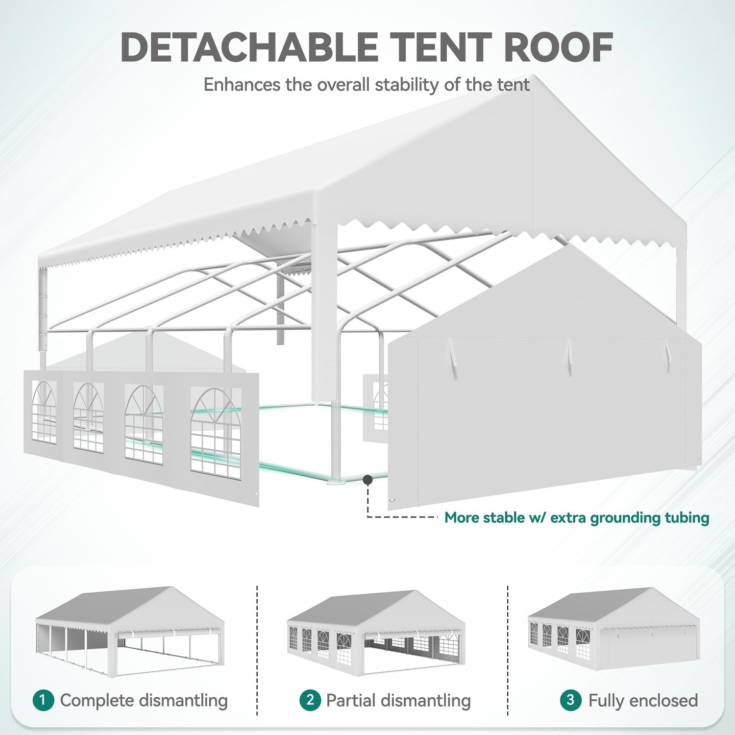 YITAHOME 20x30FT Heavy Duty Party Tent PVC White Tent Wedding Event Shelters Ripple Design Upgraded Galvanized Canopy with Large Roof Removable Sidewalls & 3 Storage Bags 600D Oxford Commercial