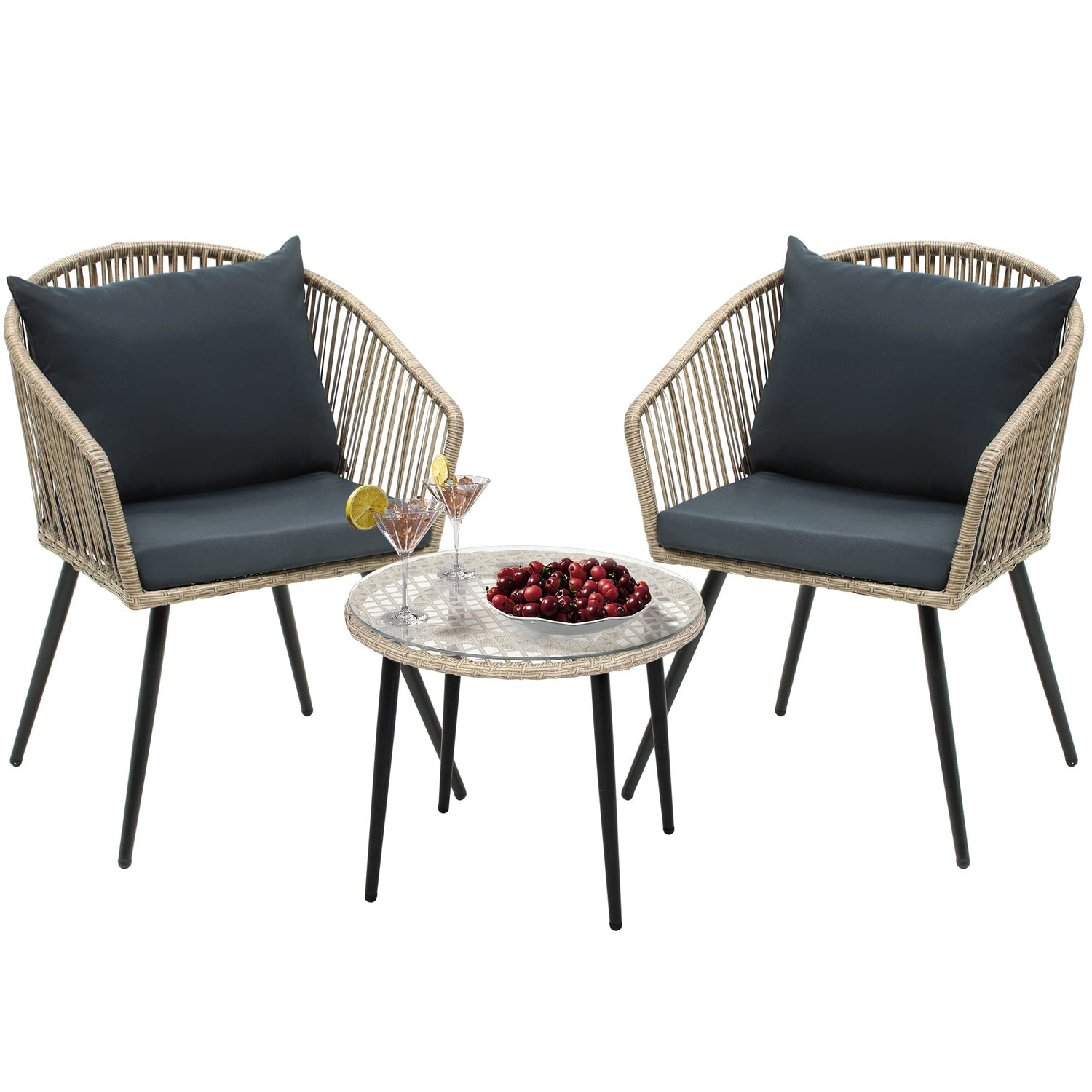 - Suitable Outdoor Companion: This outdoor wicker bistro set, with its unique design and fine craftsmanship, adds a stylish touch to any open-air environment; Ideal for patios, verandas, backyards, or any other outdoor space