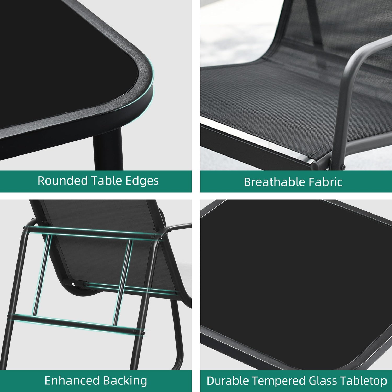 - Ultimate Comfort: Textilene fabric contours to the body for enhanced seating comfort; With curved armrests and tabletop edges, this patio set minimizes the chance of accidents and guarantees a none stress experience for you and your loved ones.